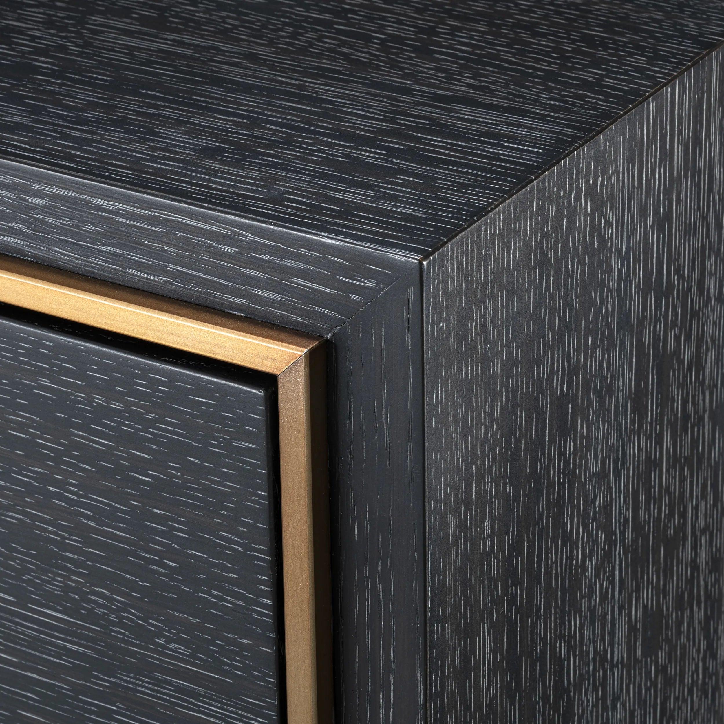 Materiał: Fornir dębowy w kolorze grafitowo-szarym, wykończenie szczotkowanego mosiądzu