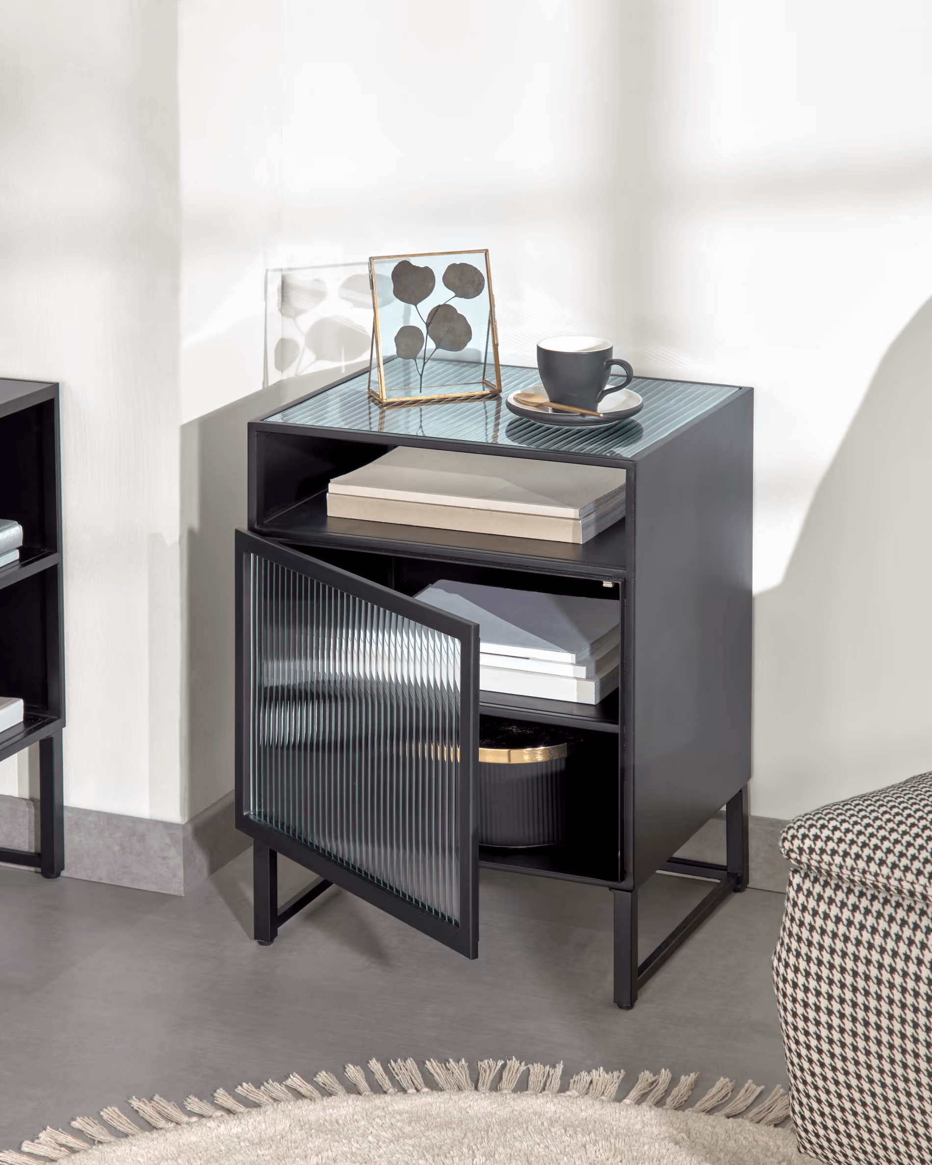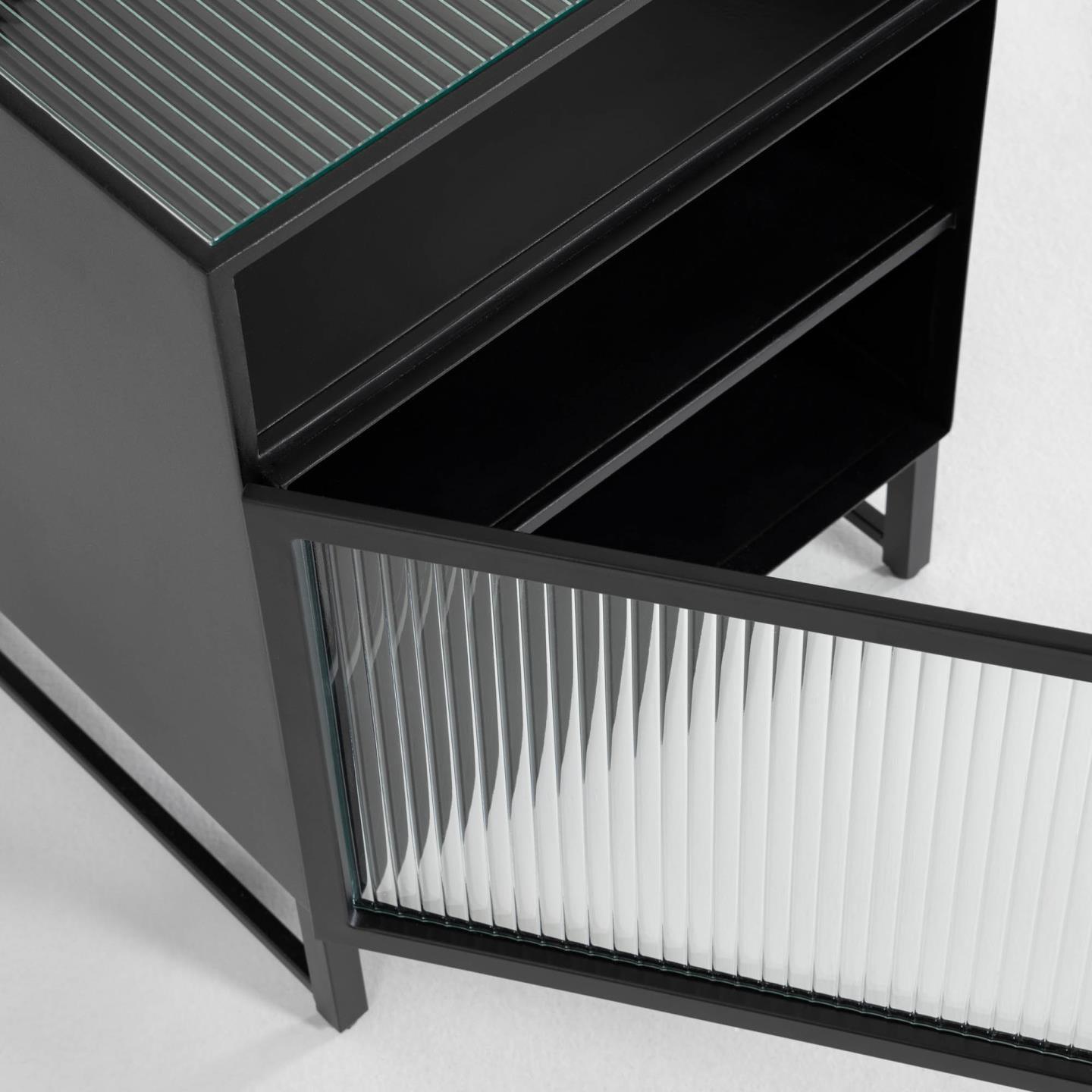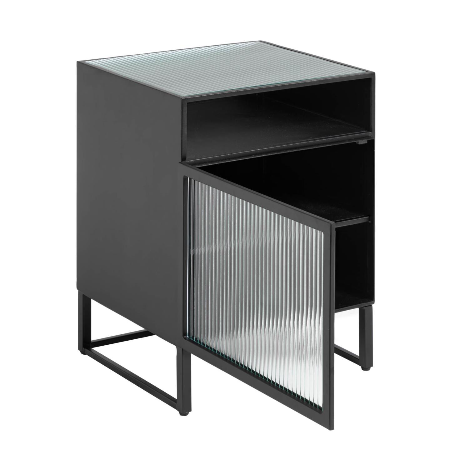 Odważ się na stal w swoim domu, nie pożałujesz! Dzięki swojemu industrialnemu designowi, ta szafka nocna jest idealna, aby nadać oryginalności i trendu każdemu pomieszczeniu. Ponadto, dzięki szklanemu frontowi, topowy wygląd jest pewny.