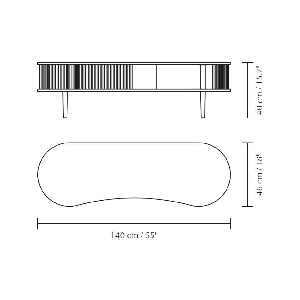 Dostępna w trzech wykończeniach - dębu, ciemnego dębu i czarnego dębu - z żaluzjami w czterech dobranych kolorach tkaniny Horizons, w 100% z recyklingu. Żaluzje są wymienne, co pozwala łatwo odświeżyć wygląd mebla bez konieczności kupowania nowego, oszczędzając jednocześnie zasoby naturalne. Istnieje również możliwość dokupienia poduszki siedziskowej, aby zwiększyć komfort podczas użytkowania.