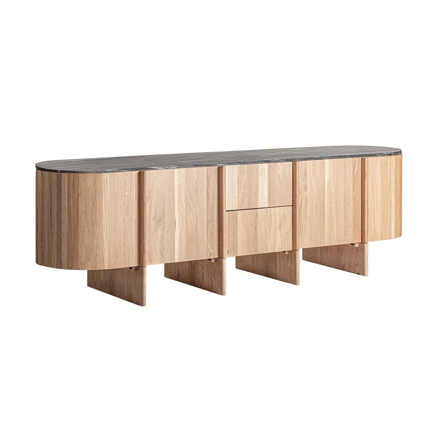 Komoda na nóżkach NARA drewno dębowe z marmurowym blatem