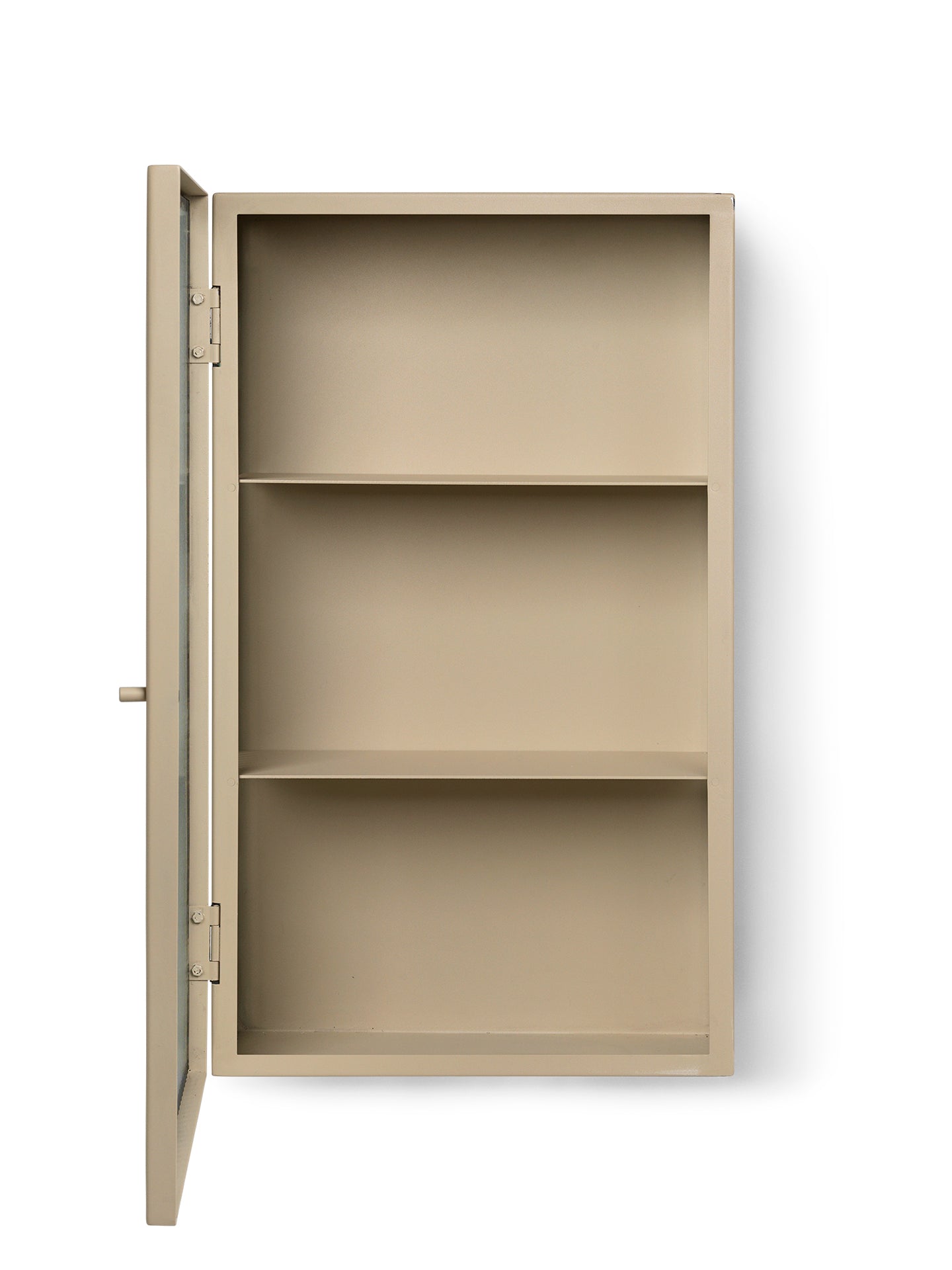 Szafka wisząca Haze, nawiązująca do industrialnej estetyki samodzielnej witryny Haze, to praktyczna szafka ścienna idealna do przechowywania drobnych przedmiotów. Wykonana z malowanej proszkowo stali w delikatnym odcieniu kaszmiru, wyposażona jest w eleganckie drzwi z ryflowanego szkła, co nadaje jej subtelnej elegancji.