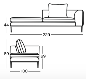 Smukłe, metalowe nogi nadają szezlongowi subtelnego uniesienia, tworząc efekt lekkości i elegancji, który kontrastuje z solidnością konstrukcji. Delikatnie zaokrąglone podłokietniki płynnie łączą się z przestronnym siedziskiem, oferując wygodne miejsce do relaksu. Stonowana kolorystyka oraz szeroki wybór tkanin pozwalają na łatwe dopasowanie szezlonga Nash do indywidualnego stylu wnętrza, czyniąc go funkcjonalnym i estetycznym elementem nowoczesnej przestrzeni.