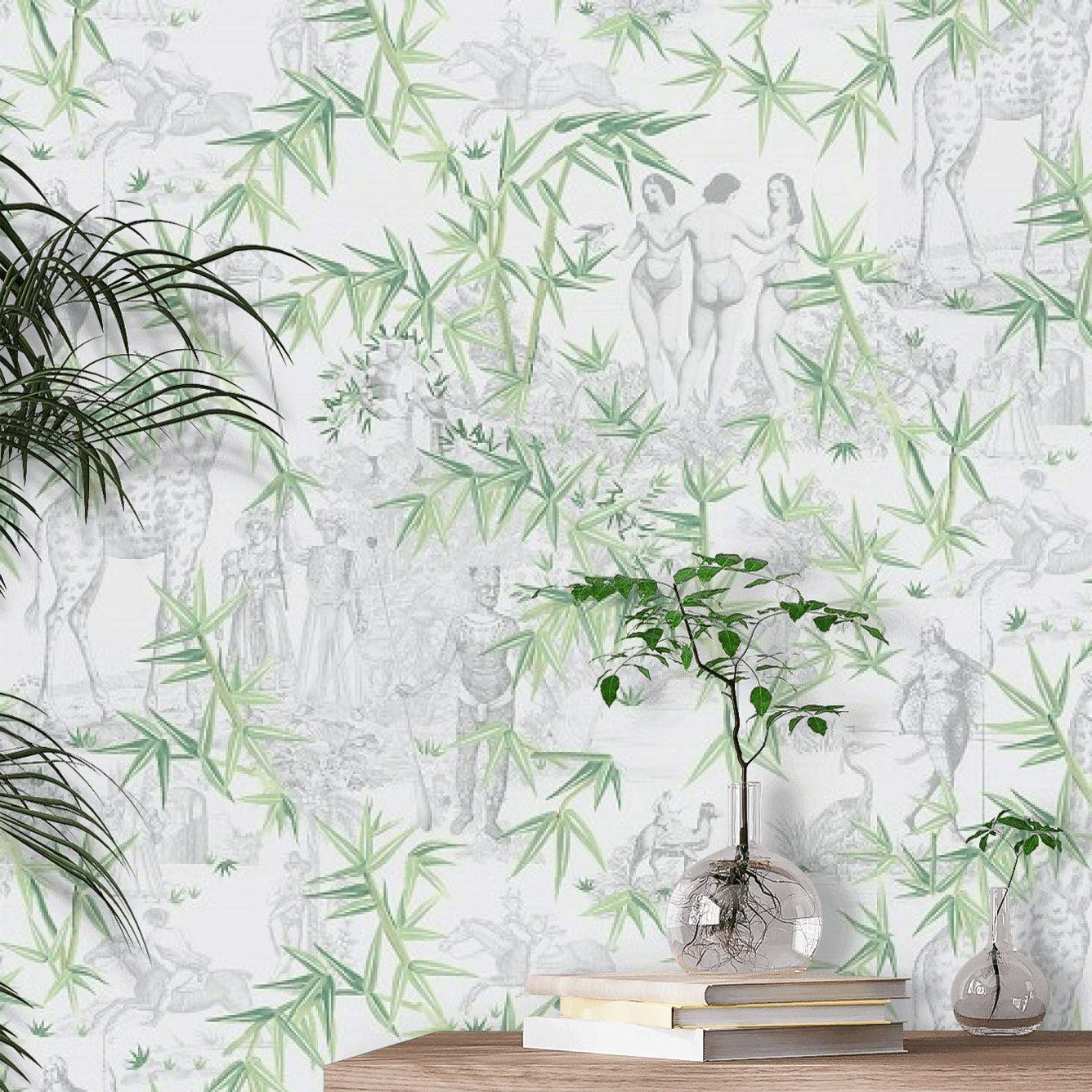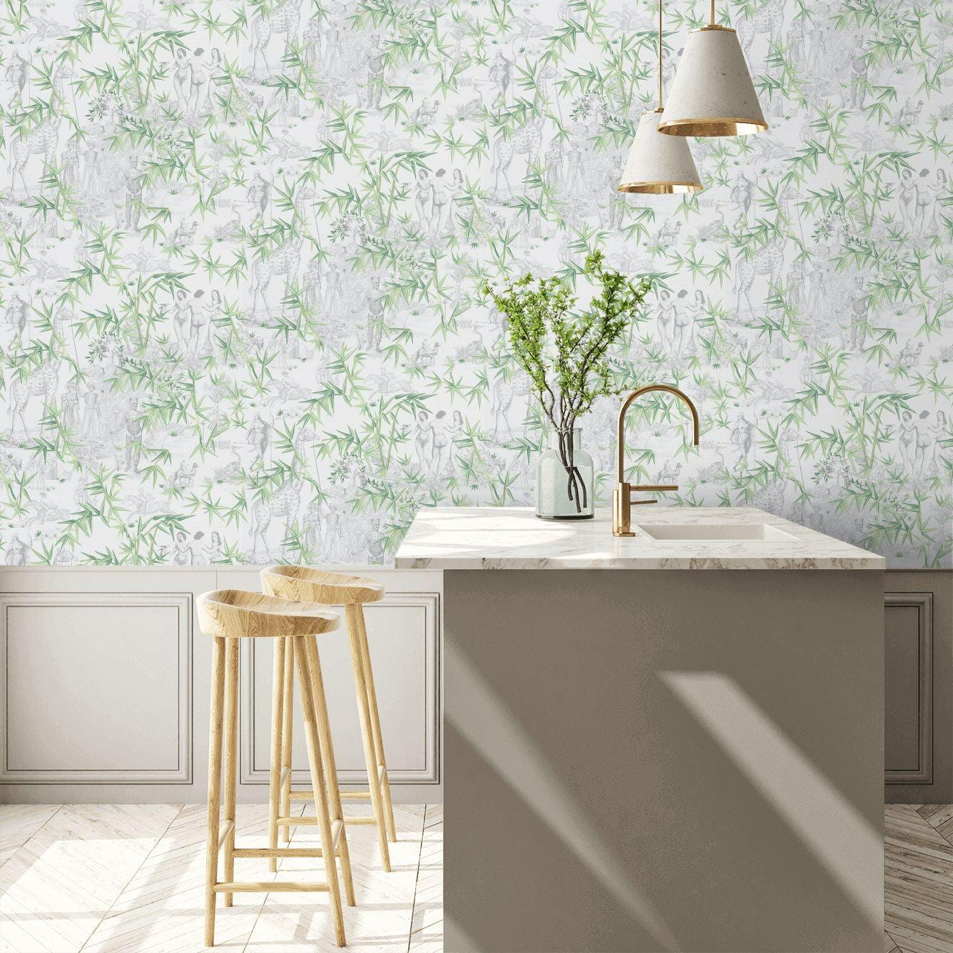 Tapeta EXOTISME VERT BUIS szary z zielonym