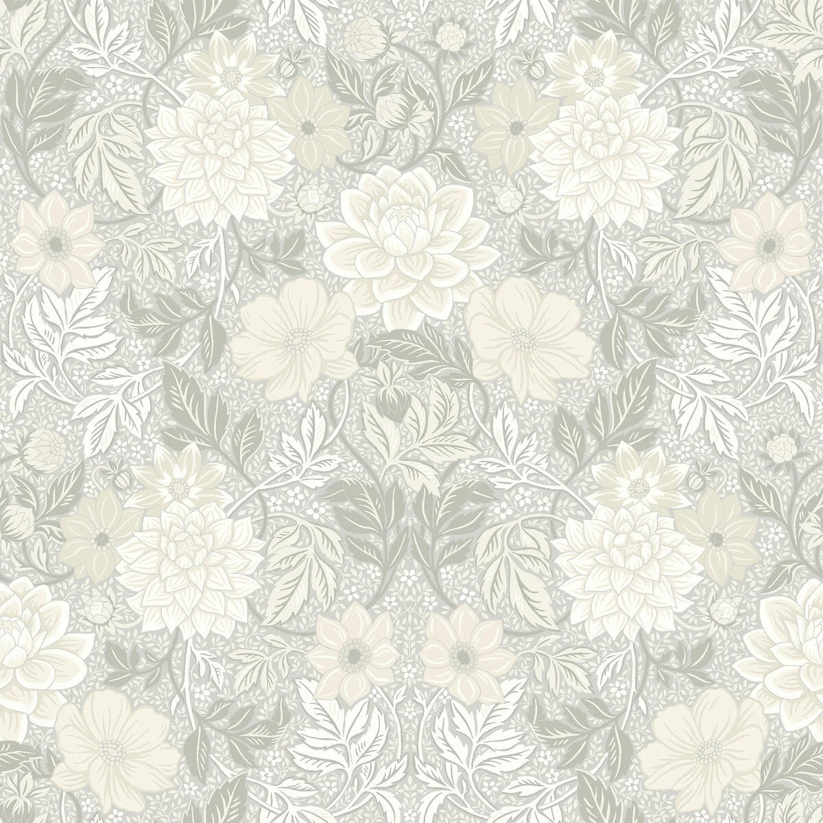Tapeta flizelinowa papierowa z roślinnym wzorem DAHLIA GARDEN szarobeżowy z białym
