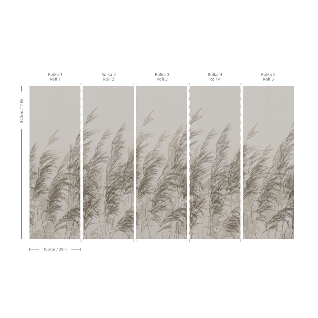 Tapeta standardowo sprzedawana jest w rolkach 100x300 cm (rolka) oraz 500x300 cm (mural). Wzór każdej rolki jest powtarzalny w poziomie.