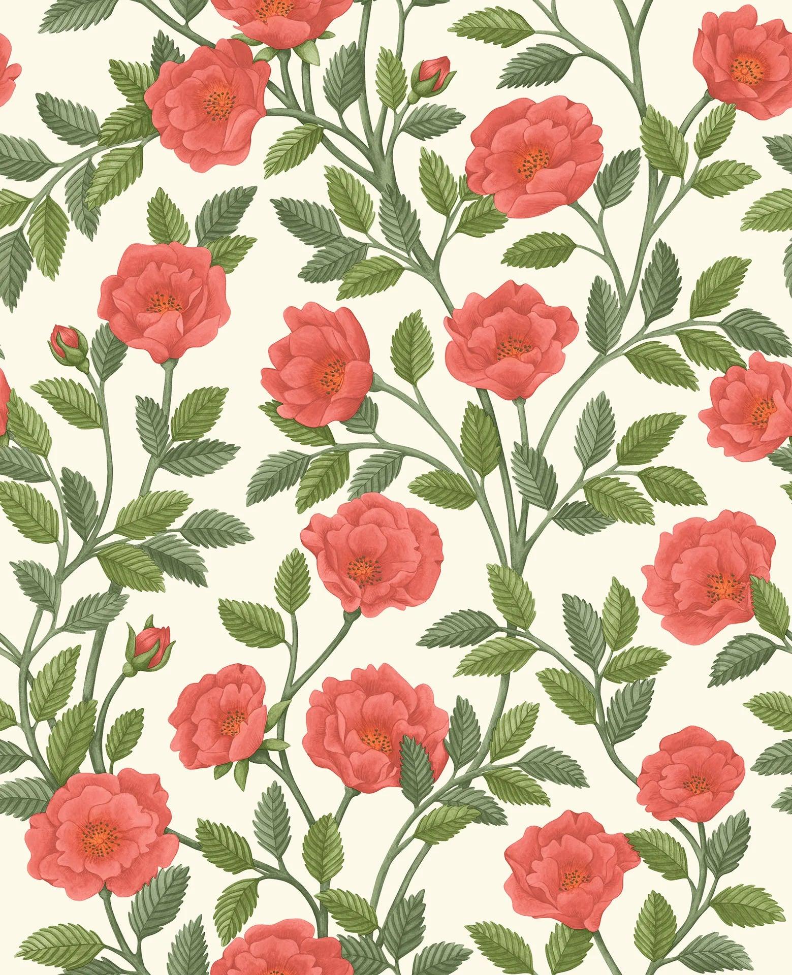 Piękna tapeta Hampton Roses z kwitnącym różami, jest zainspirowana ogrodami znajdującymi się w Pałacu Hampton Court, który posiada tradycje sadzenia róż od ponad 500 lat. Obecnie znajduje się tam wiele odmian tej królowej kwiatów w tym róże angielskie, róże herbaciane, róże pnące i róże dzikie, których żywe piękno inspiruje ten oszałamiający projekt.