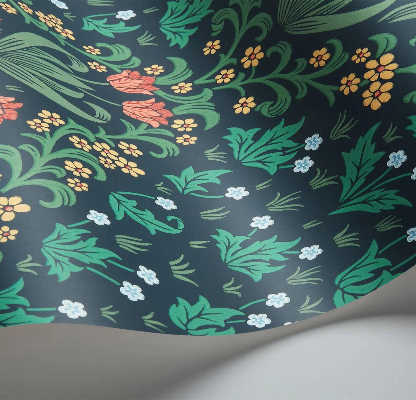 Tulipany, ulubione kwiaty Marii II, są otoczone słodko pachnącymi ziołami i dzikimi kwiatami łąkowymi. Kwiaty łagodzą geometryczną formę motywu.