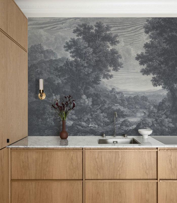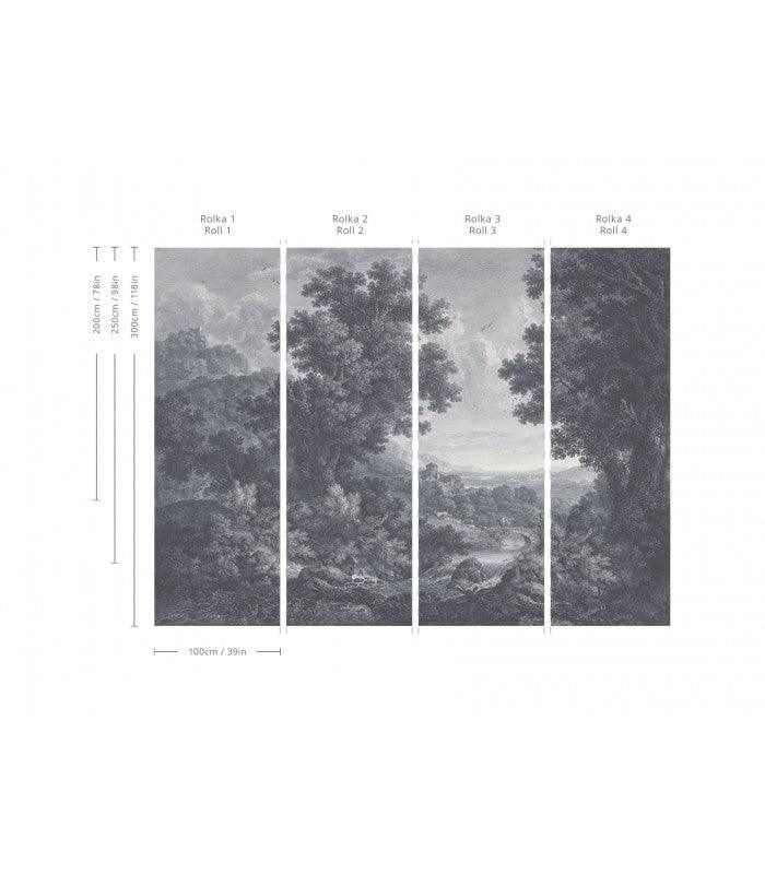 Picturesque Valley of Serenity Blue to tapeta Wallcolors, która zaprasza do świata klasycznego piękna i natury. Jej monochromatyczny krajobraz w odcieniach serenity blue przekształca ściany w artystyczne płótno, gdzie czas zdaje się zatrzymać. Idealna dla wnętrz vintage, jak i nowoczesnych przestrzeni szukających głębi i charakteru.