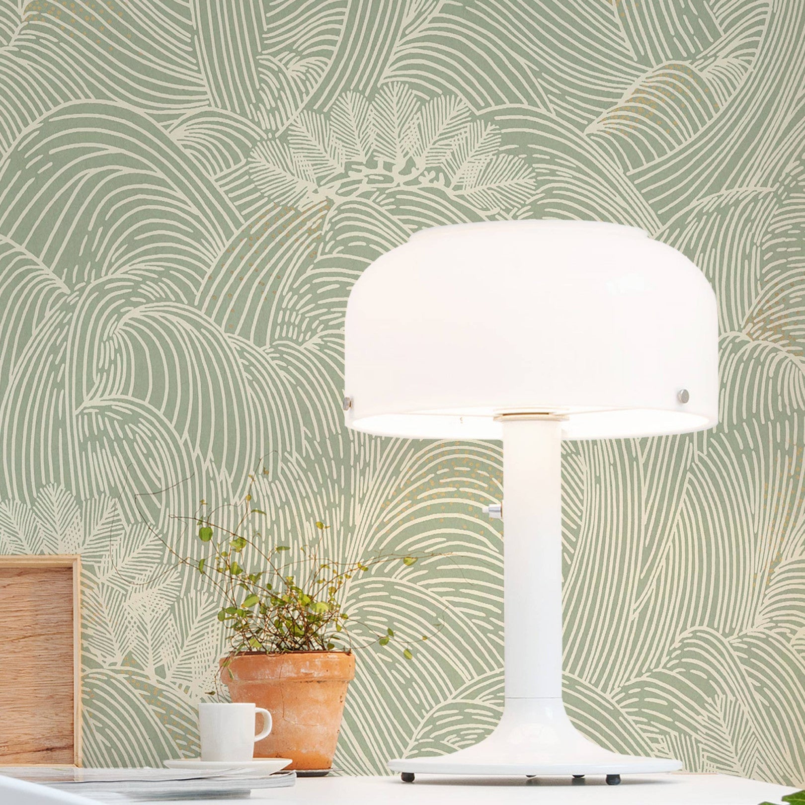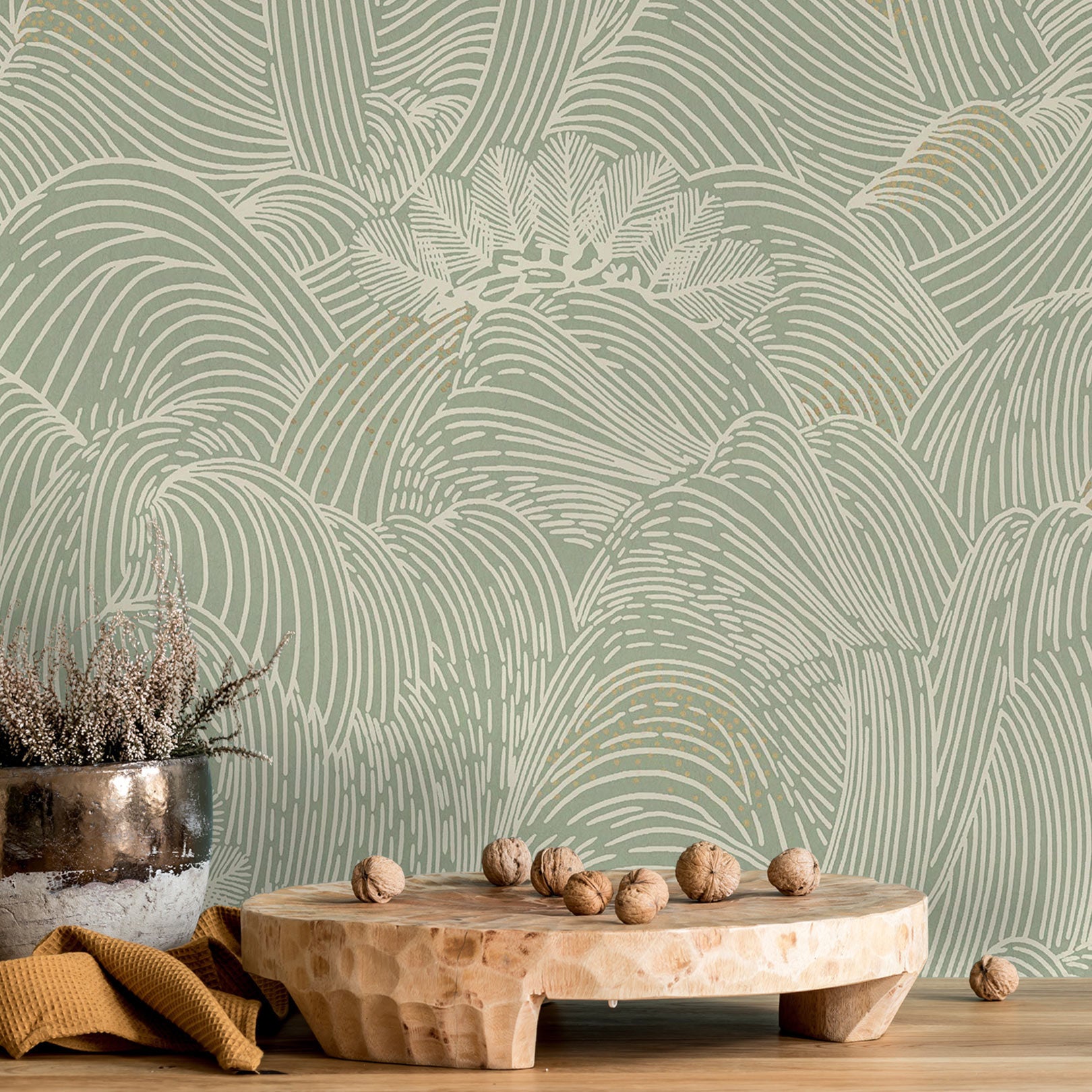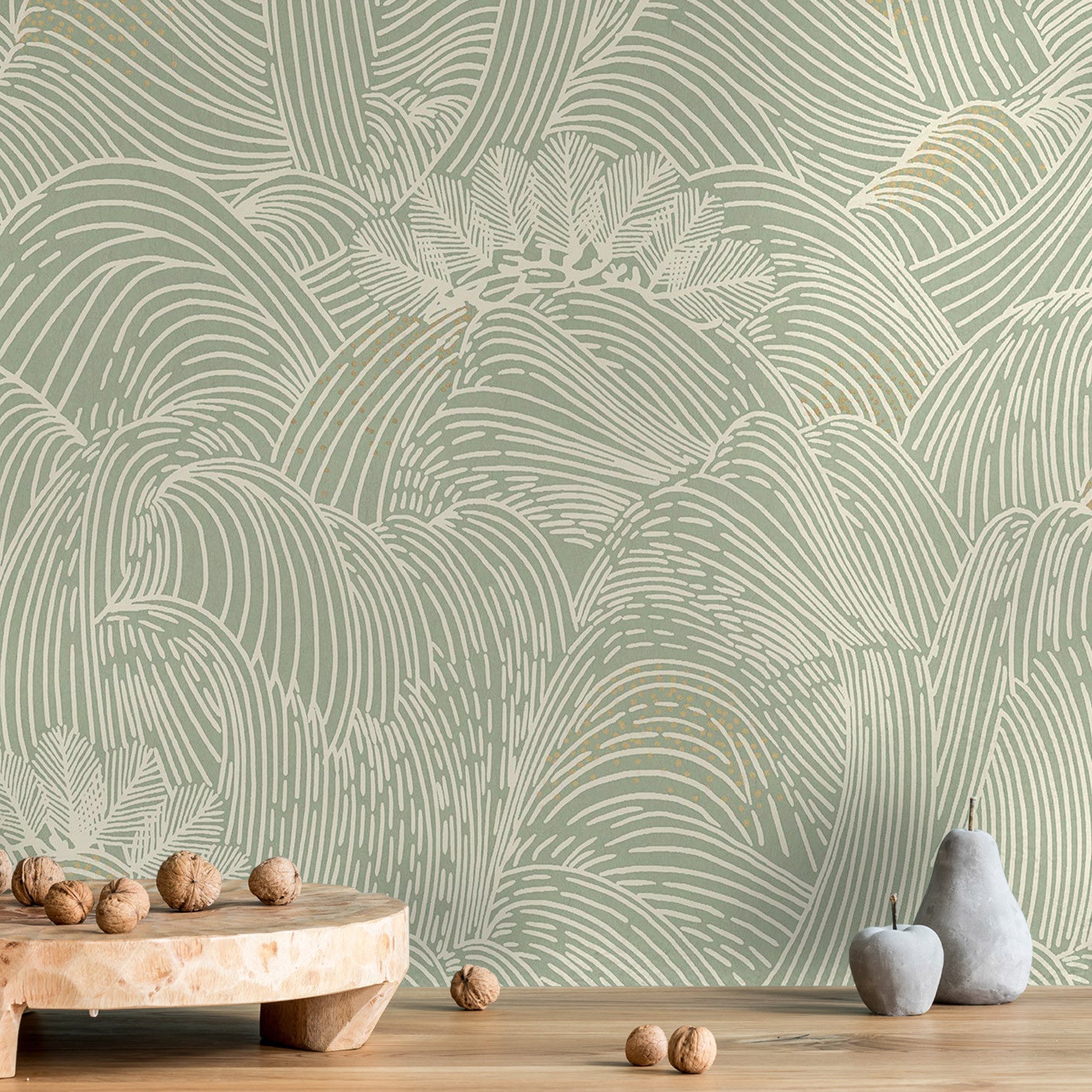 Tapeta strukturalna z abstrakcyjnym wzorem fal MARÉE HAUTE - VERT zielony