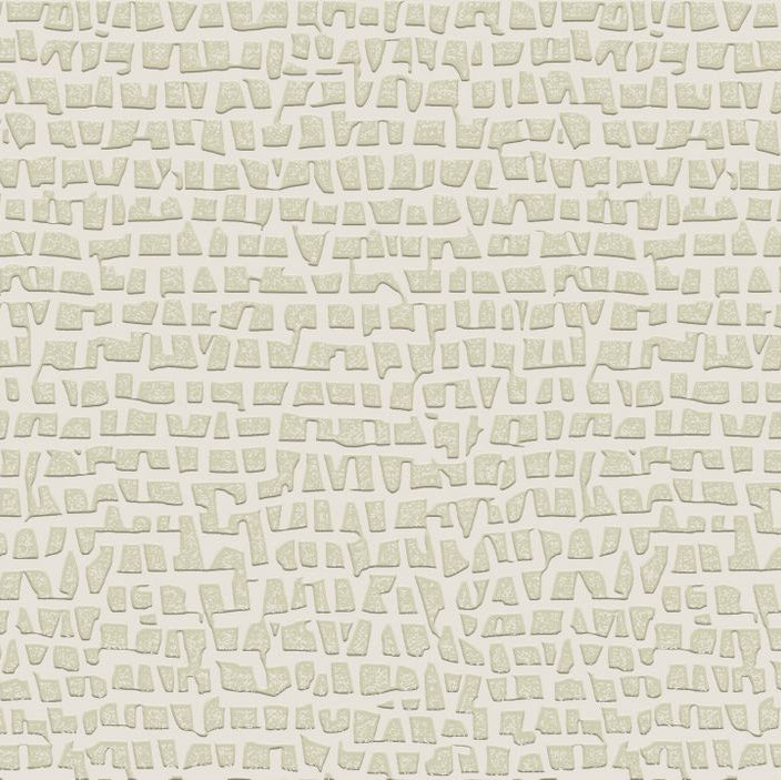 Tapeta Serti czerpie inspirację z biżuteryjnych detali, subtelnie nawiązując do geometrycznych form spotykanych w jubilerskich oprawach kamieni. Wzór o wyczuwalnej strukturze powstaje dzięki zastosowaniu podniesionego nadruku na naturalnej lnianej bazie, co nadaje mu elegancji i głębi. Delikatna metaliczna folia dodaje całości szlachetnych refleksów tworząc efekt patynowanej mozaiki, który pięknie współgra ze światłem i podkreśla wyrafinowany charakter okładziny.