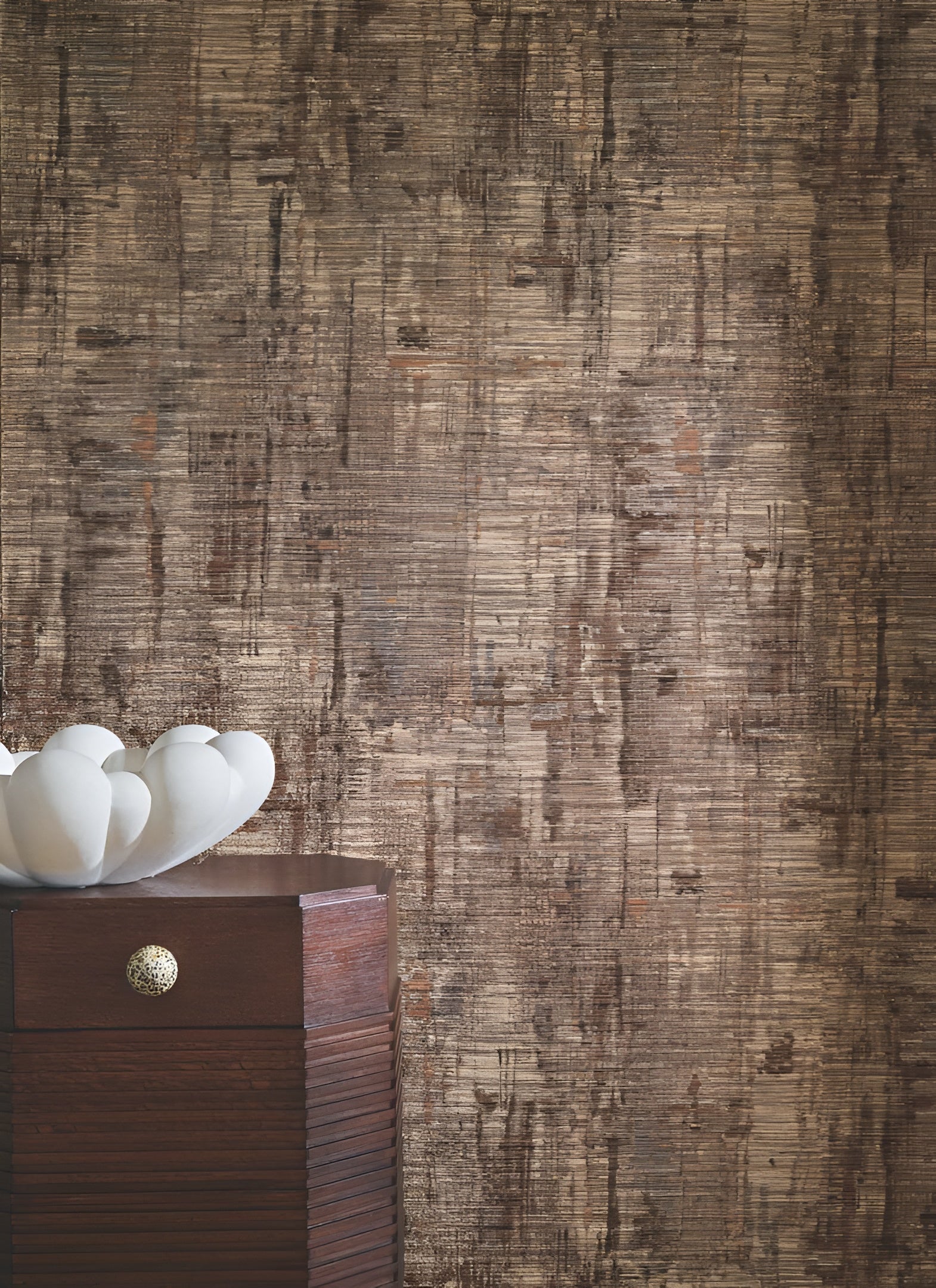 Tapeta tekstylna strukturalna z abstrakcyjnym wzorem MANUFACTURA - ORANGE BRULÉ brązowopomarańczowy