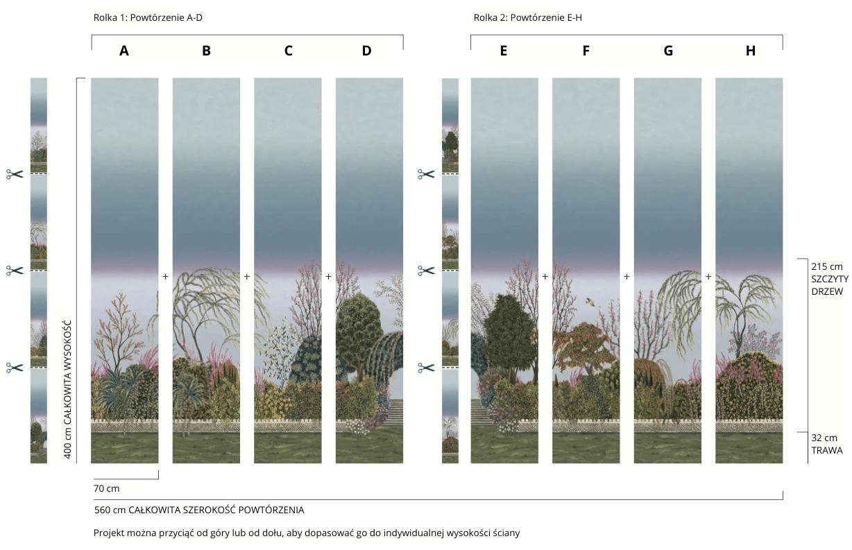 Cena dotyczy 2 rolek całkowitym wymiarze muralu 5,6 x 4,9 m. Szerokość rolki to 70 cm.