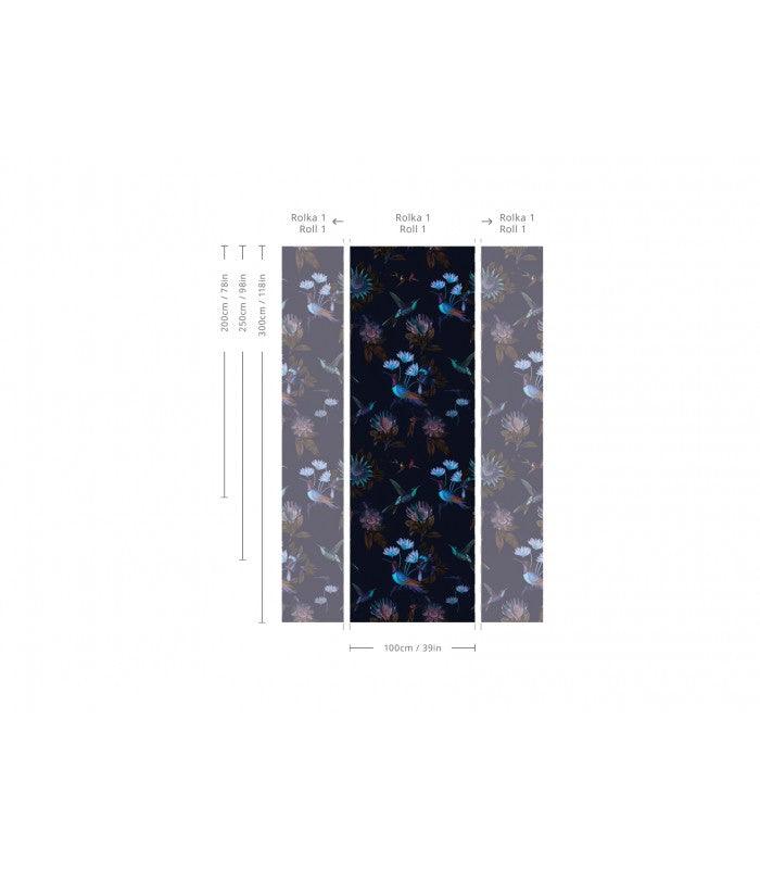 Tapeta Toxic Hummingbirds to śmiały projekt, które przeniesie Cię do tajemniczego, egzotycznego lasu. Nasycone barwy kolibrów i egzotycznych kwiatów na głębokim, ciemnoniebieskim tle tworzą wyjątkową głębię i dynamikę, doskonałą dla nowoczesnych i odważnych wnętrz. To idealny wybór dla tych, którzy pragną wyrazistych akcentów i chcą dodać swoim przestrzeniom unikalnego charakteru.
