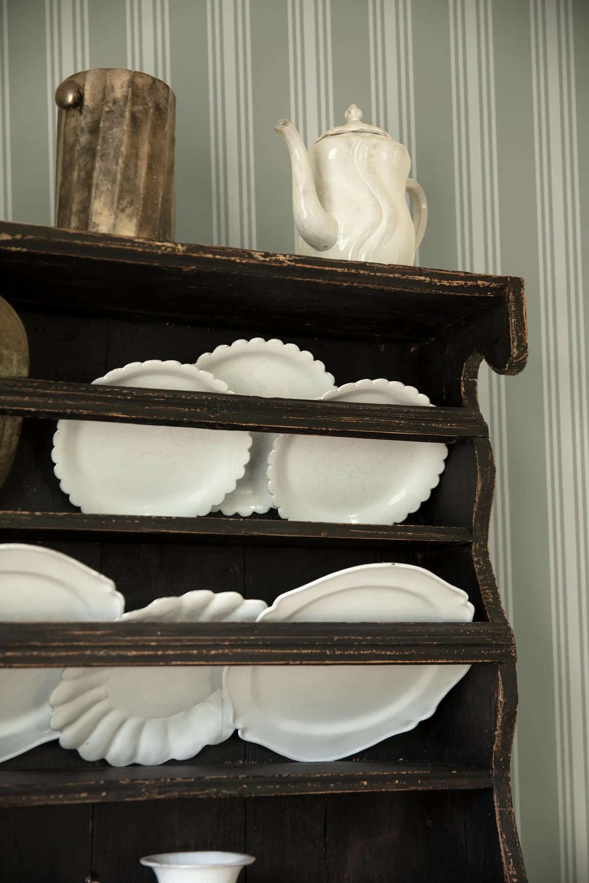Tapeta Gunnebo to elegancka propozycja, która wnosi do wnętrza klasyczny urok w stylu gustawiańskim. Delikatne kremowe paski na tle subtelnego wzoru przywodzą na myśl piękno XVIII-wiecznej szwedzkiej rezydencji Gunnebo, w której wzór ten miał swoje źródło. Prosty, ale wyrafinowany design tworzy atmosferę spokoju i harmonii.