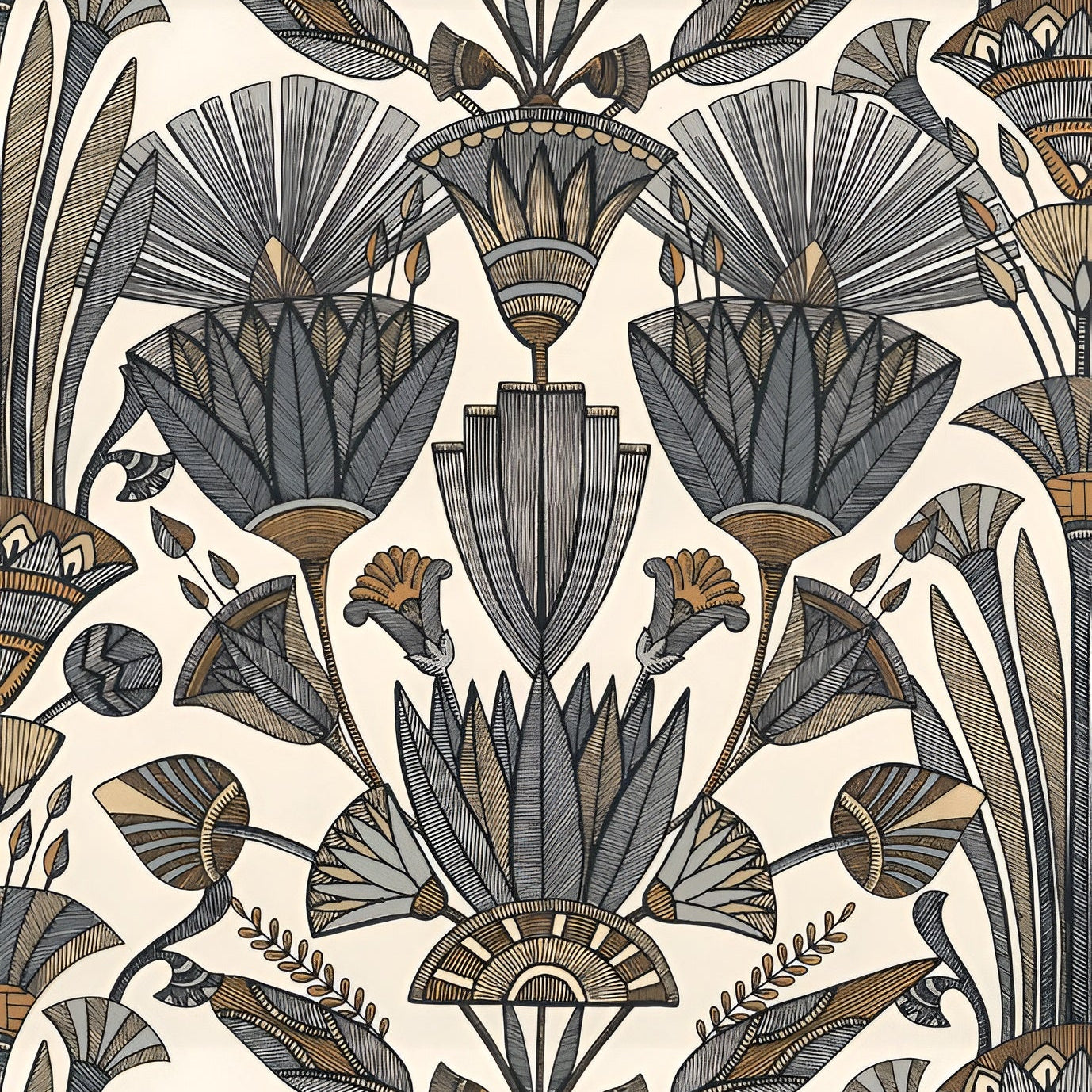 Tapeta z motywem roślinnym DENDERAH - BLANC/MORDORE biały z brązowym