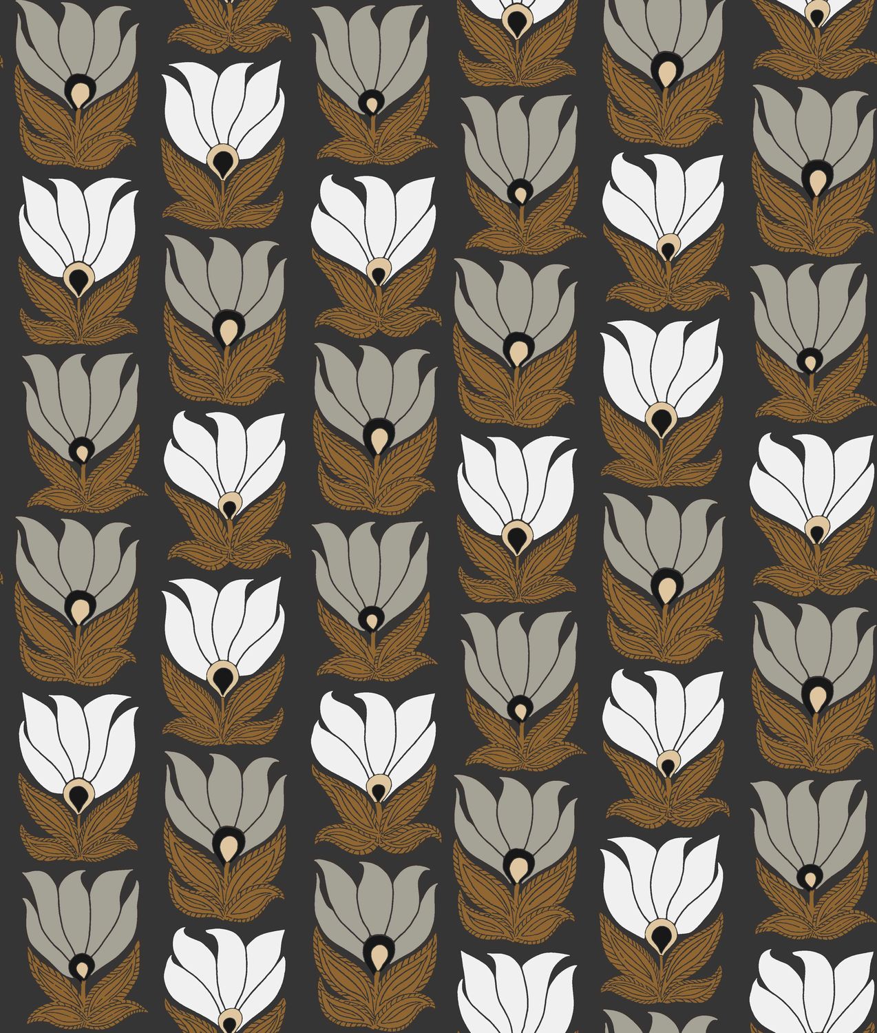 Tapeta z motywem roślinnym kwiatów DAUPHINE - NOIR/DORE czarny ze złotym i szarym