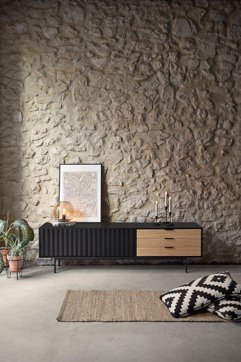 Jak większość projektów hiszpańskiej marki Teulat, szafka RTV Sierra odznacza się wysoką jakością wykonania oraz zachowaniem klasycznych form. Połączenie czerni i drewna dodaje szafce nowoczesnego, a z drugiej strony przytulnego wyglądu.