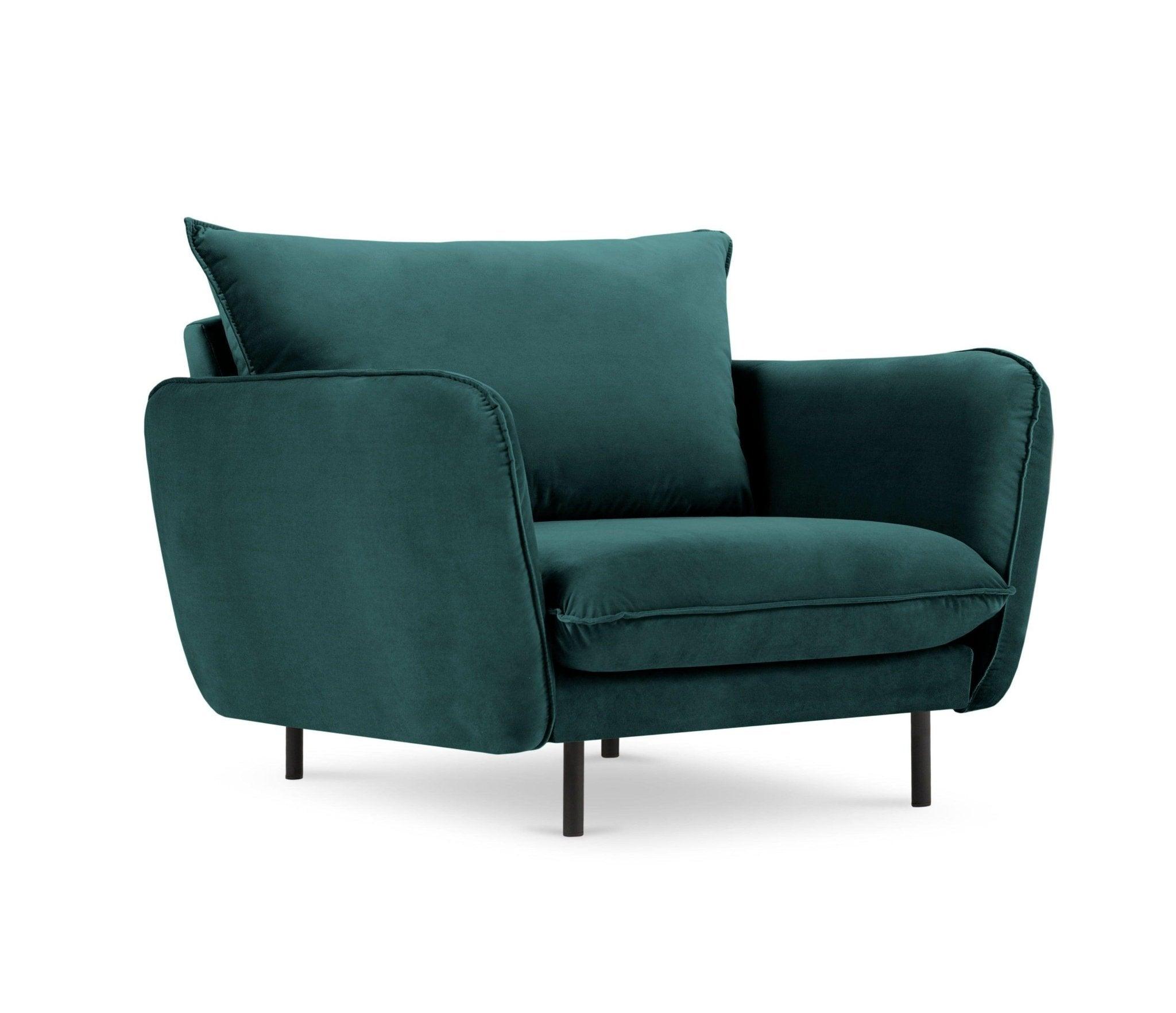 Fotel aksamitny VIENNA morski z czarną podstawą