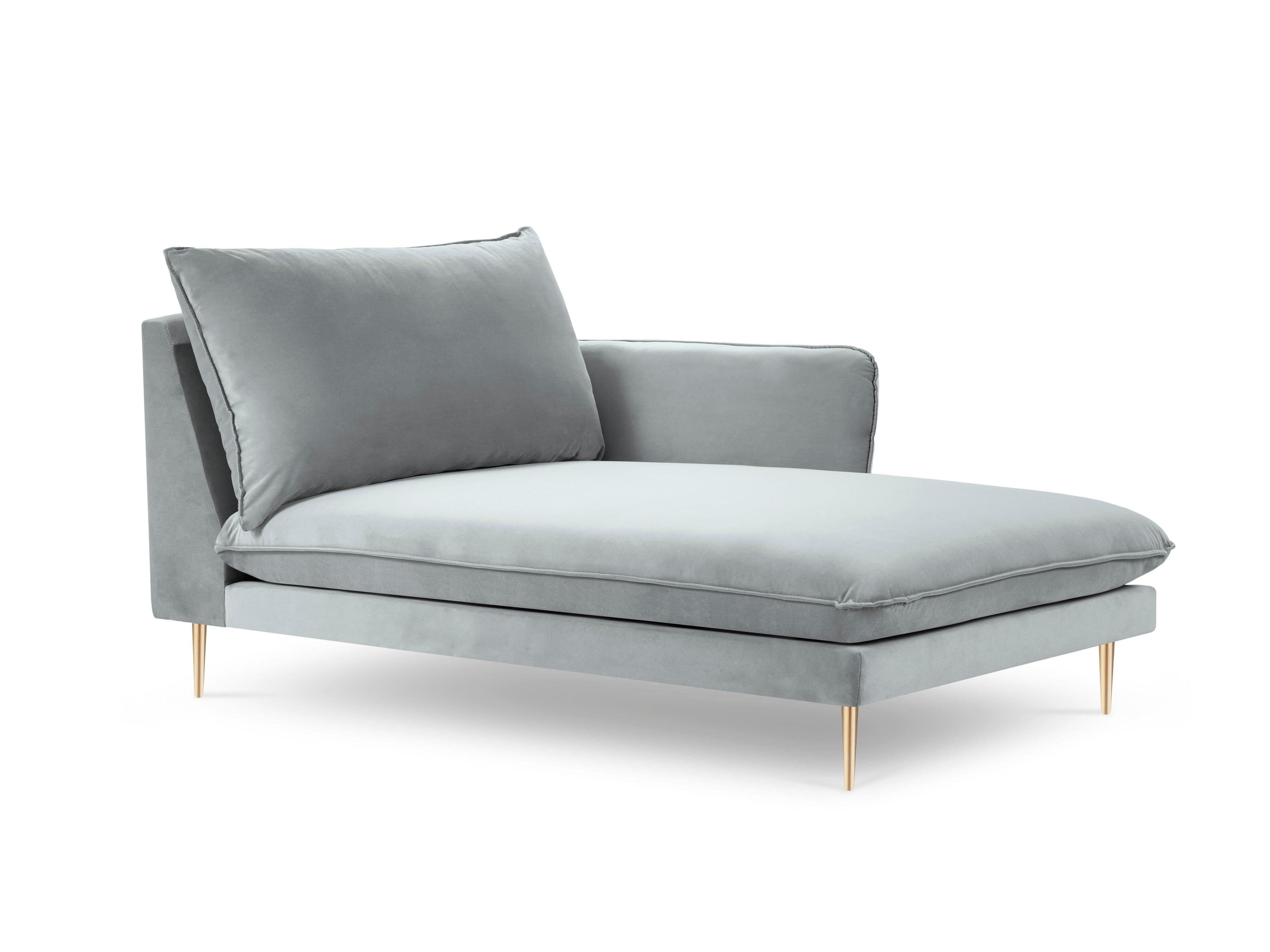 Szezlong aksamitny prawostronny VIENNA jasnoszary ze złotą podstawą