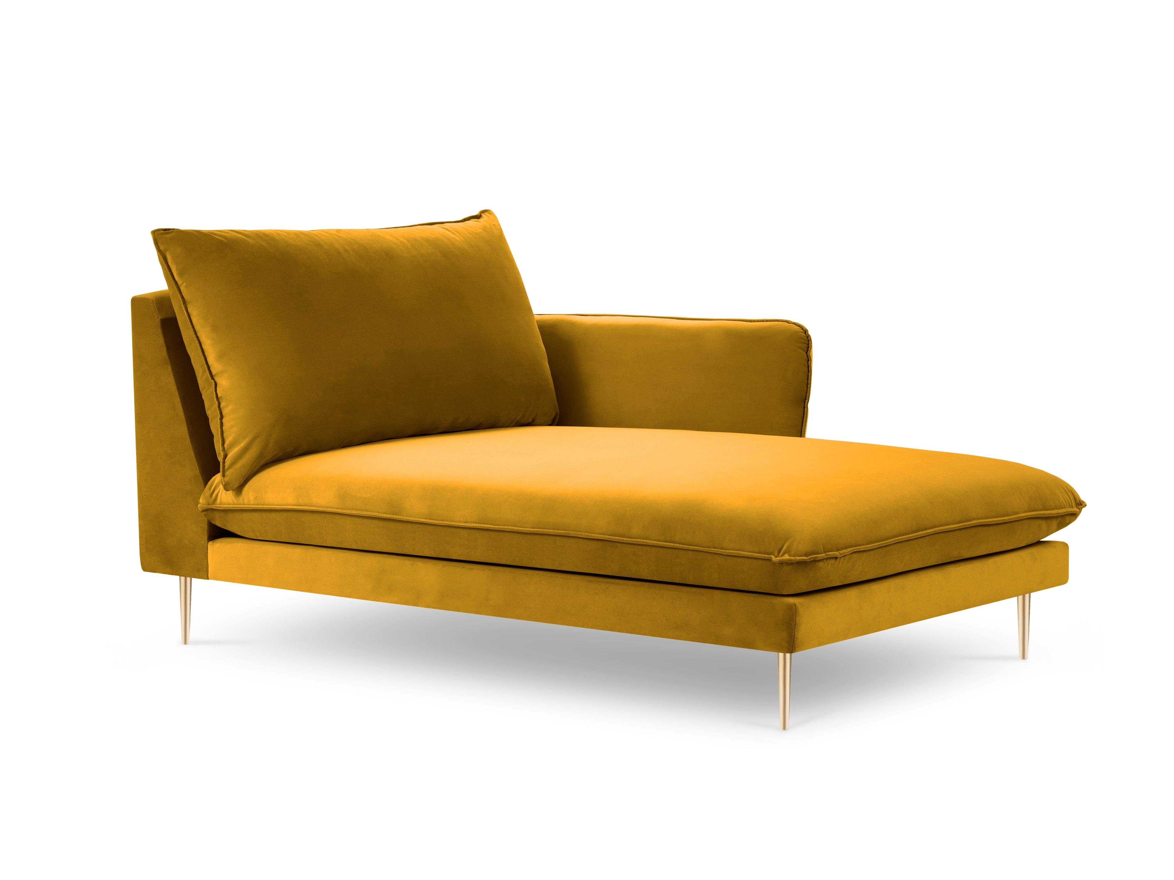 Szezlong aksamitny prawostronny VIENNA żółty ze złotą podstawą