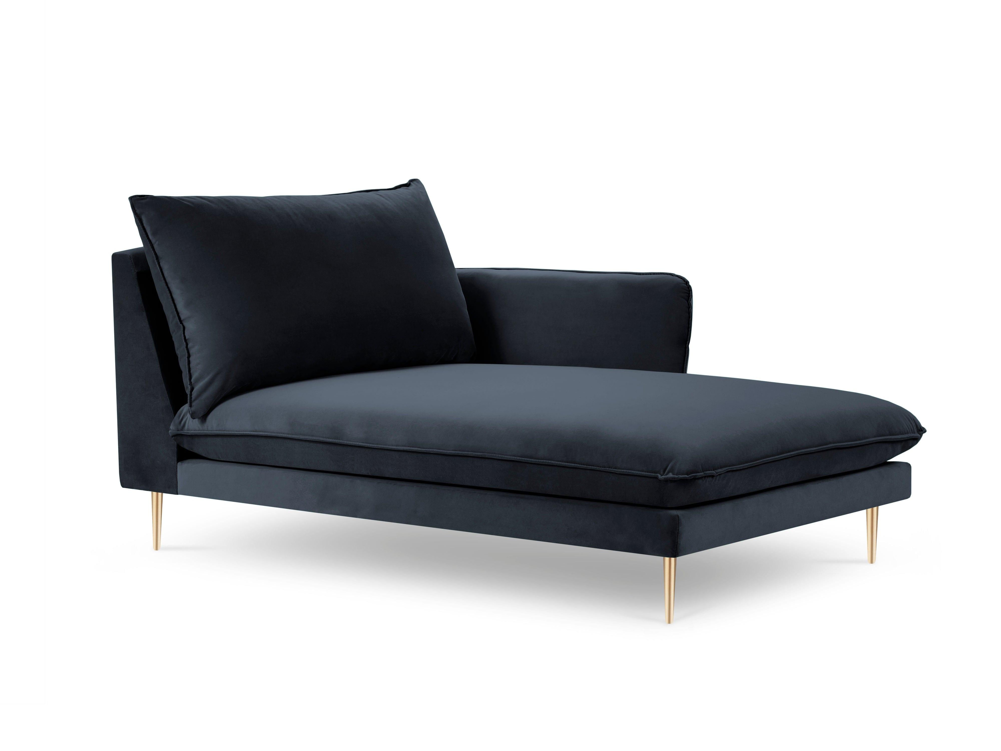 Szezlong aksamitny prawostronny VIENNA granatowy ze złotą podstawą