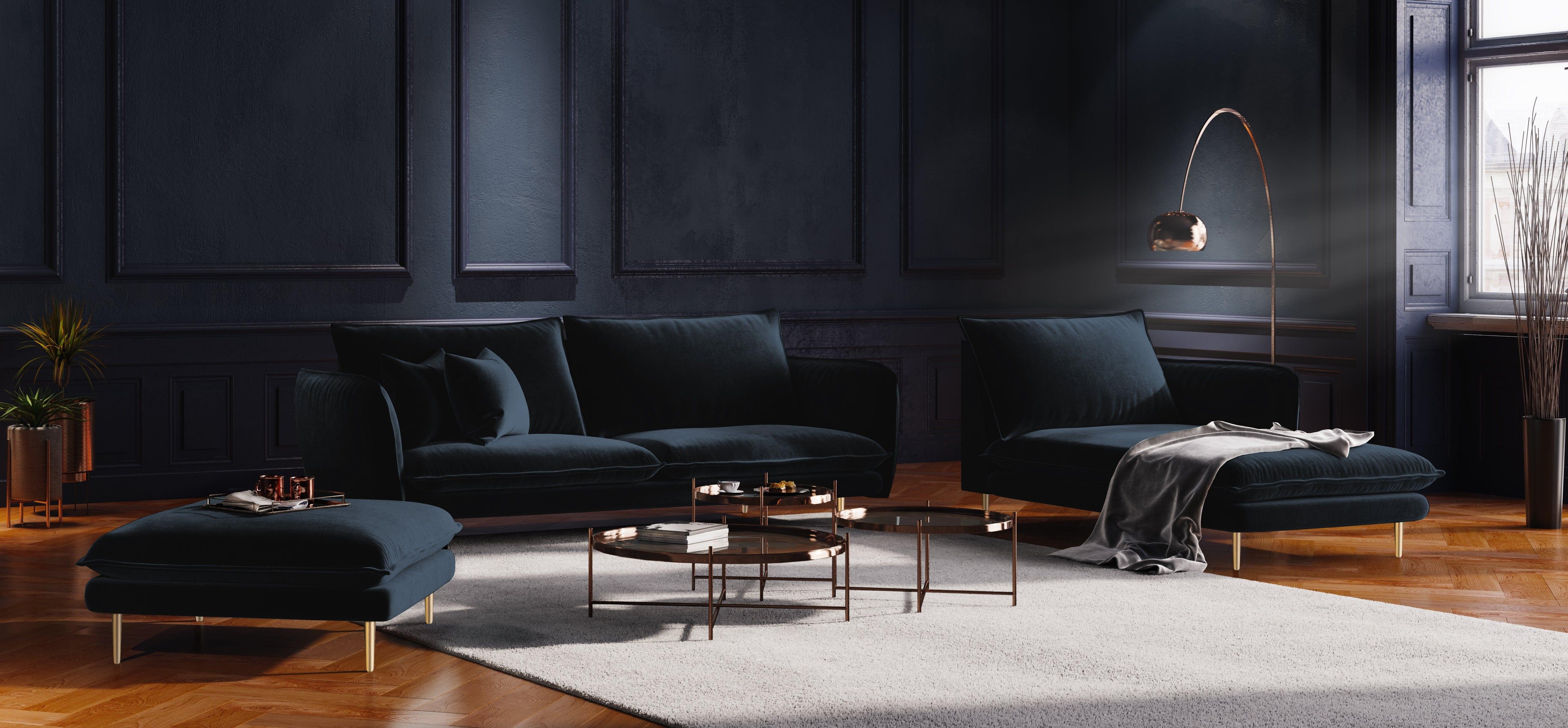 Aksamitny szezlong Vienna wyróżniają piękne proporcje i harmonijne kształty. Szezlong jest nie tylko wygodny, ale też wprowadzi do wnętrza nutę paryskiego szyku i elegancji. Subtelny kształt i miękkie siedzisko zapewnią niezwykły komfort użytkowania. Metalowe nogi nadają całej formie lekkości.