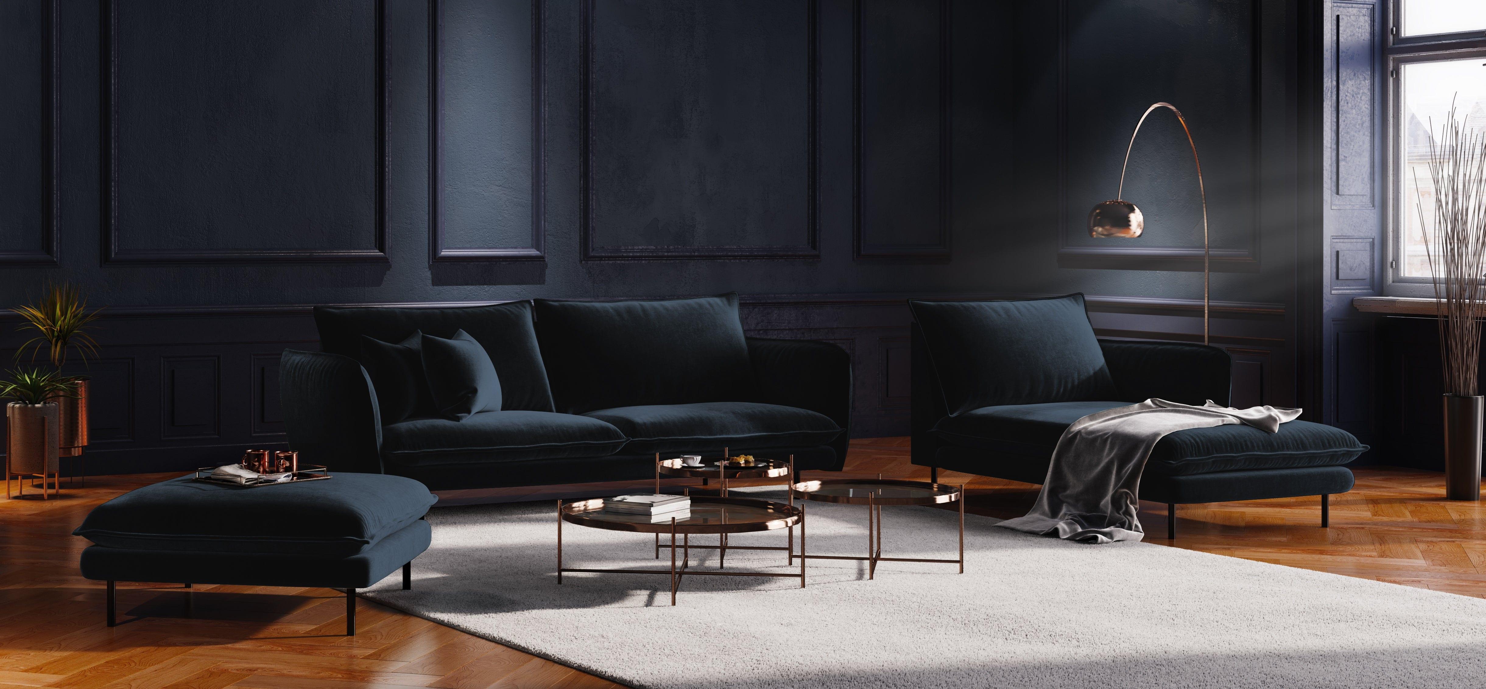 Aksamitny szezlong Vienna wyróżniają piękne proporcje i harmonijne kształty. Szezlong jest nie tylko wygodny, ale też wprowadzi do wnętrza nutę paryskiego szyku i elegancji. Subtelny kształt i miękkie siedzisko zapewnią niezwykły komfort użytkowania. Metalowe nogi nadają całej formie lekkości.