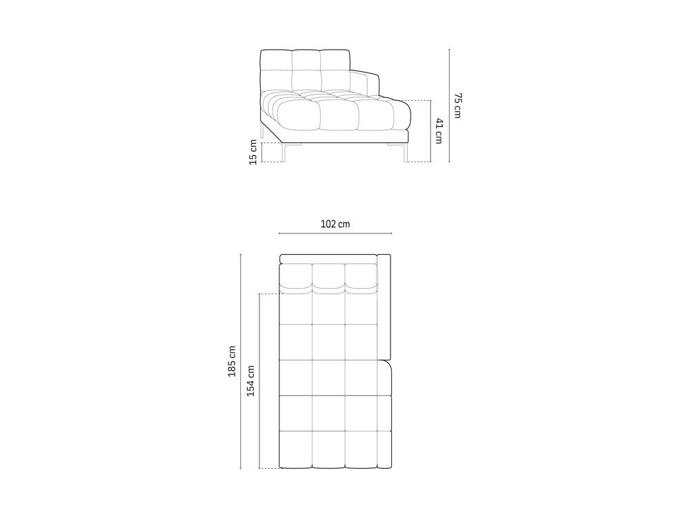 Szezlong aksamitny prawostronny BALI jasnobeżowy ze złotą podstawą