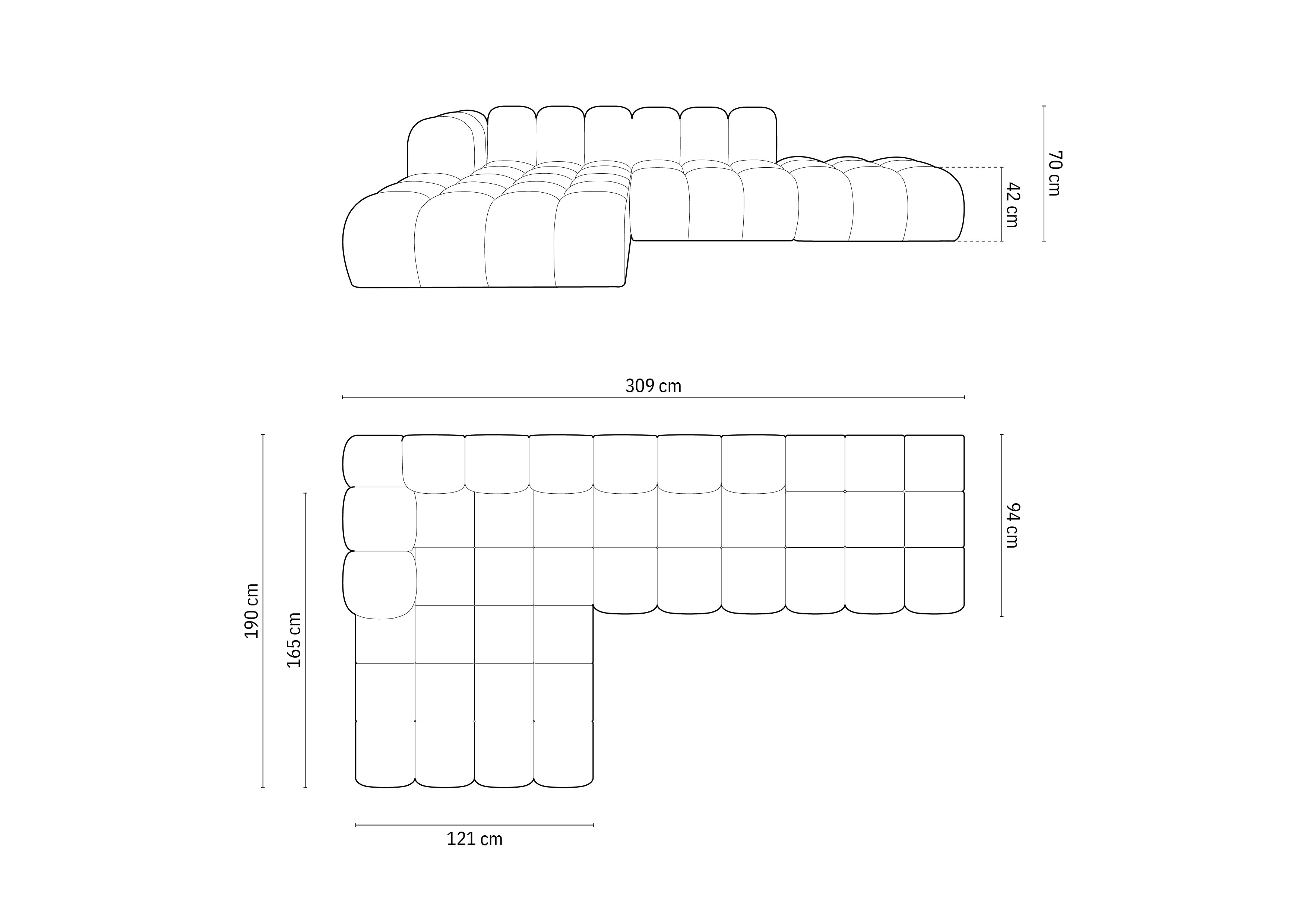 Narożnik nie tylko prezentuje atrakcyjny wygląd, ale również emanuje przytulnym charakterem. Aksamitna tkanina, charakteryzująca się niezwykłą trwałością i miękkością, nadaje całości luksusowego wykończenia. Meble z limitowanej kolekcji Halley stanowią efektowny zestaw wypoczynkowy, wprowadzając do wnętrza subtelny akcent ponadczasowej elegancji.