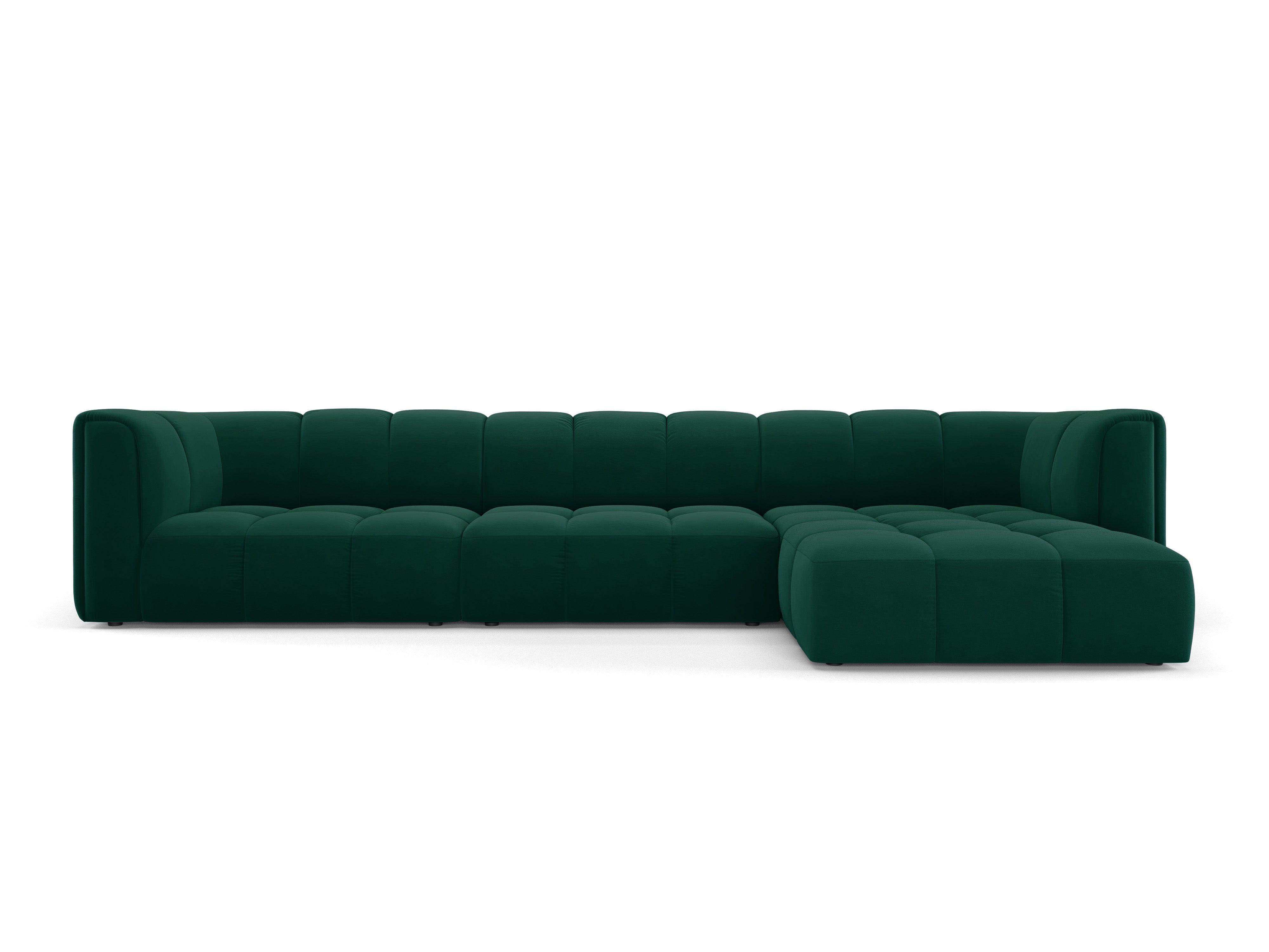 Narożnik aksamitny 5-osobowy prawostronny FRANCESCA butelkowa zieleń