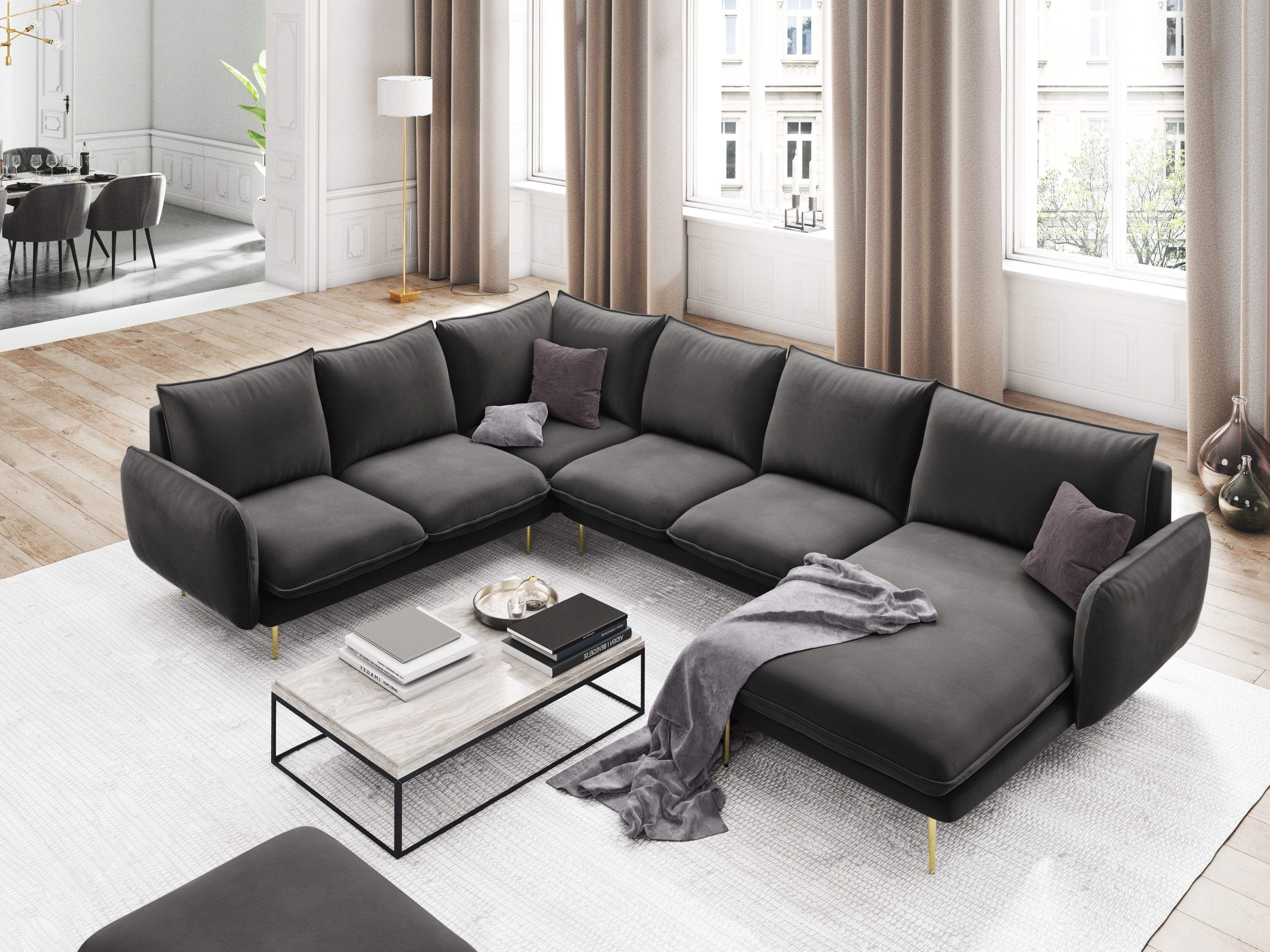Narożnik lewostronny aksamitny panoramiczny VIENNA ciemnoszary ze złotą podstawą Cosmopolitan Design    Eye on Design