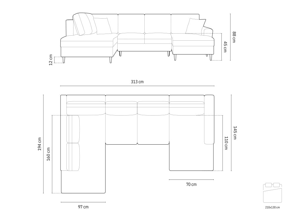 Narożnik nie tylko zachwyca wyglądem, ale stanowi też funkcjonalny dodatek do przytulnego salonu. W ciągu chwili, może zamienić się w wygodne łóżko z praktycznym schowkiem na pościel. Jest to idealne rozwiązanie w przypadku niezapowiedzianych gości lub wielofunkcyjnych pomieszczeń. Oglądanie ulubionego serialu w rodzinnym gronie lub popołudniowa drzemka po ciężkim dniu nabiorą zupełnie nowego wymiaru z tak wygodnym miejscem do odpoczynku.