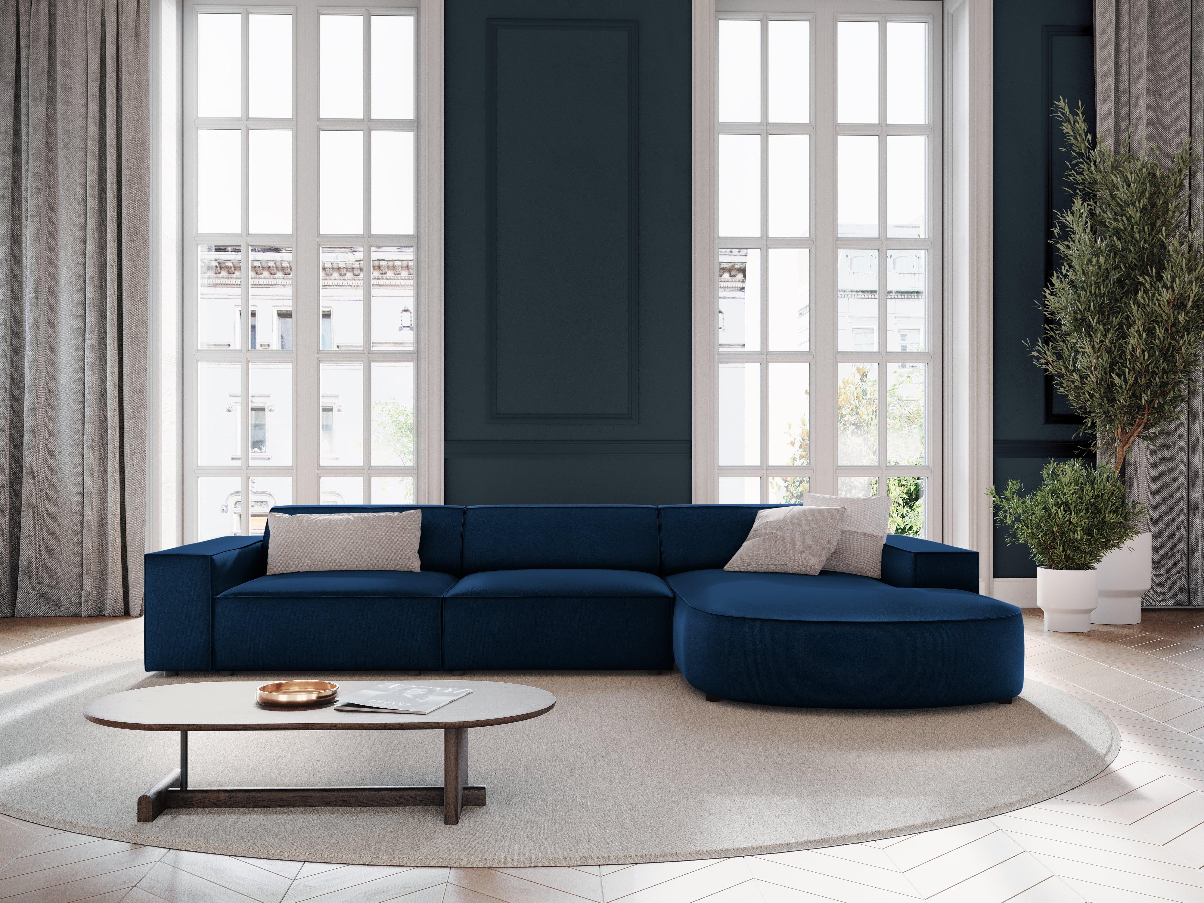 Narożnik aksamitny prawostronny 4-osobowy okrągły JODIE granat królewski