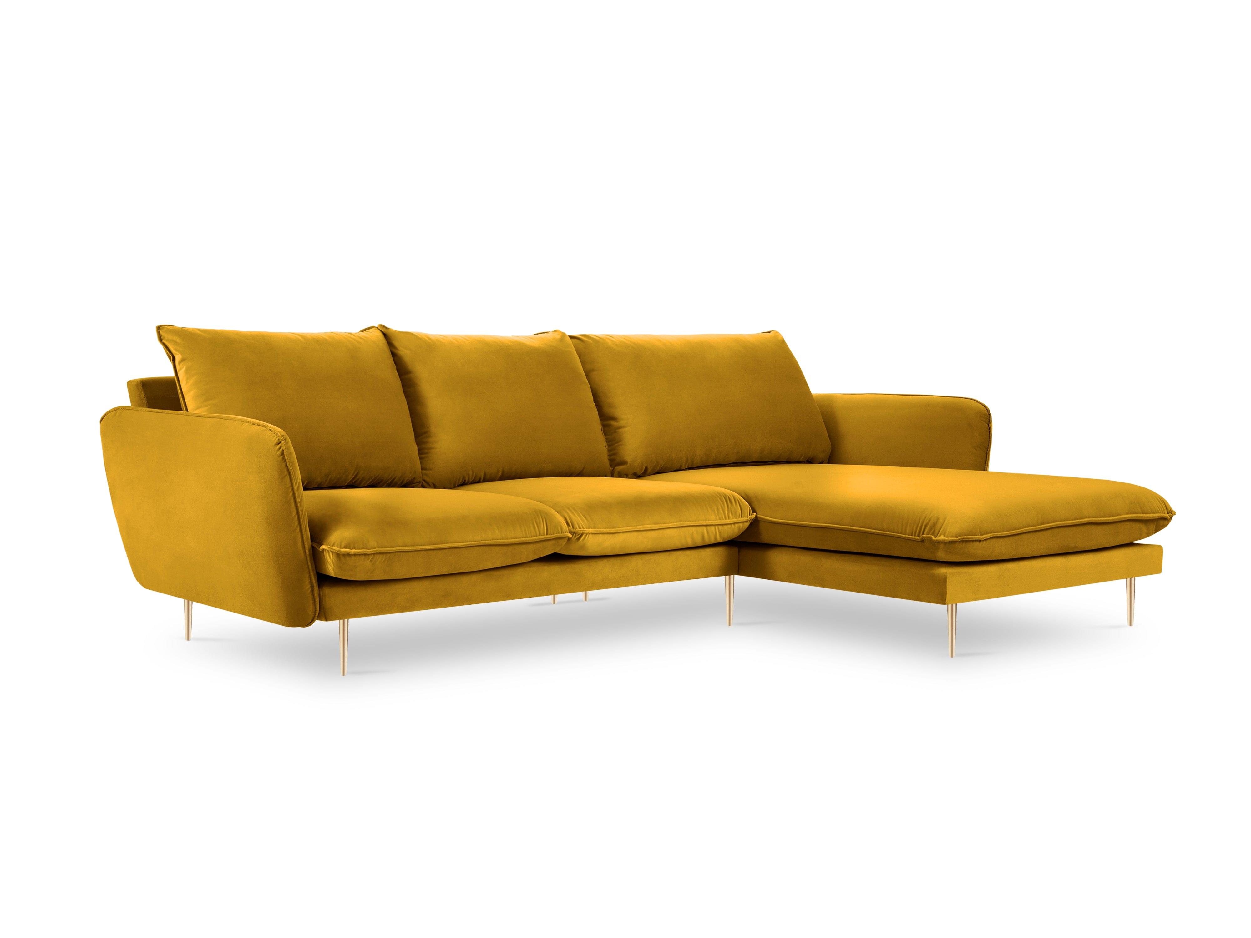 Narożnik aksamitny prawostronny VIENNA żółty ze złotą podstawą