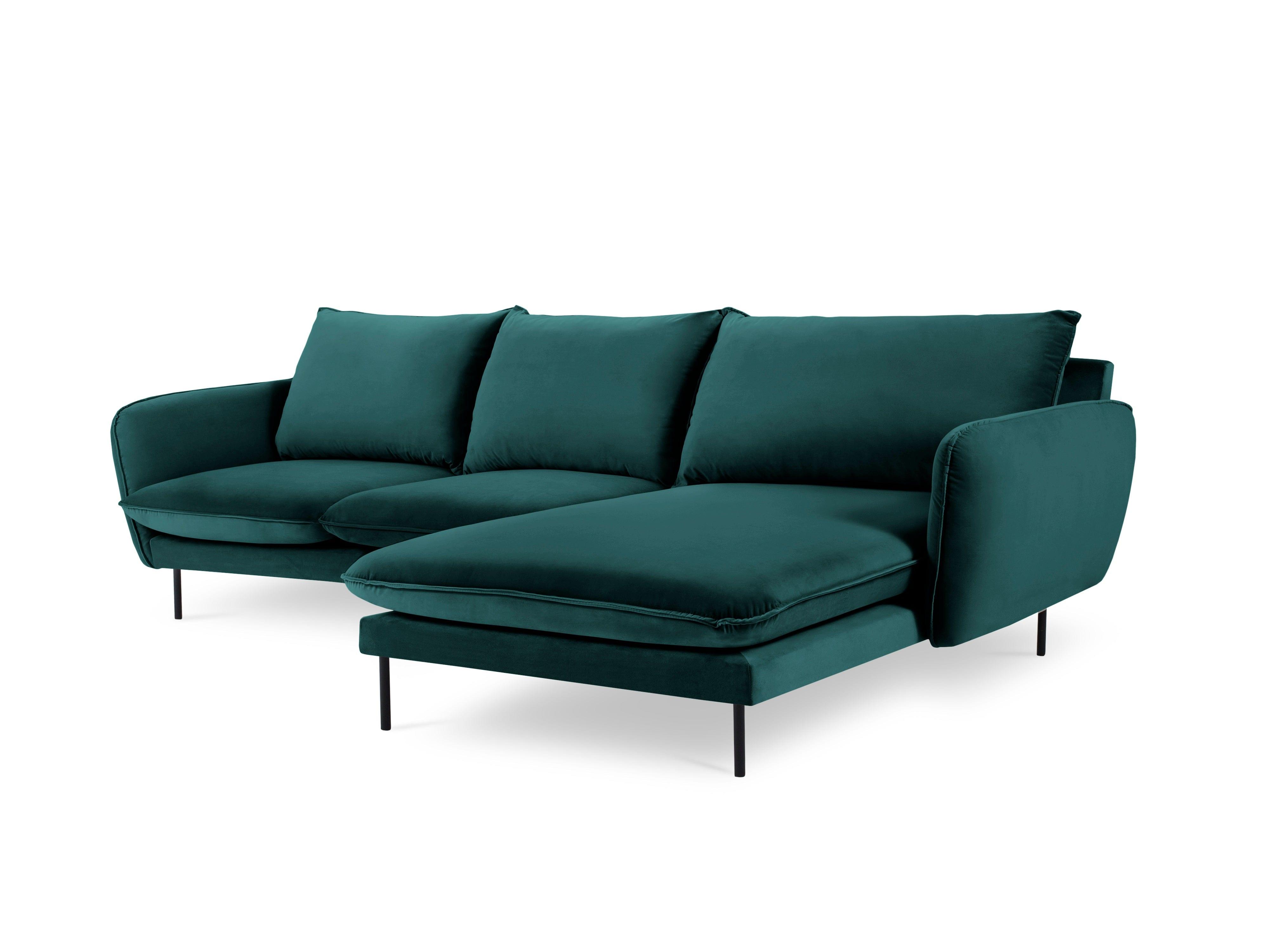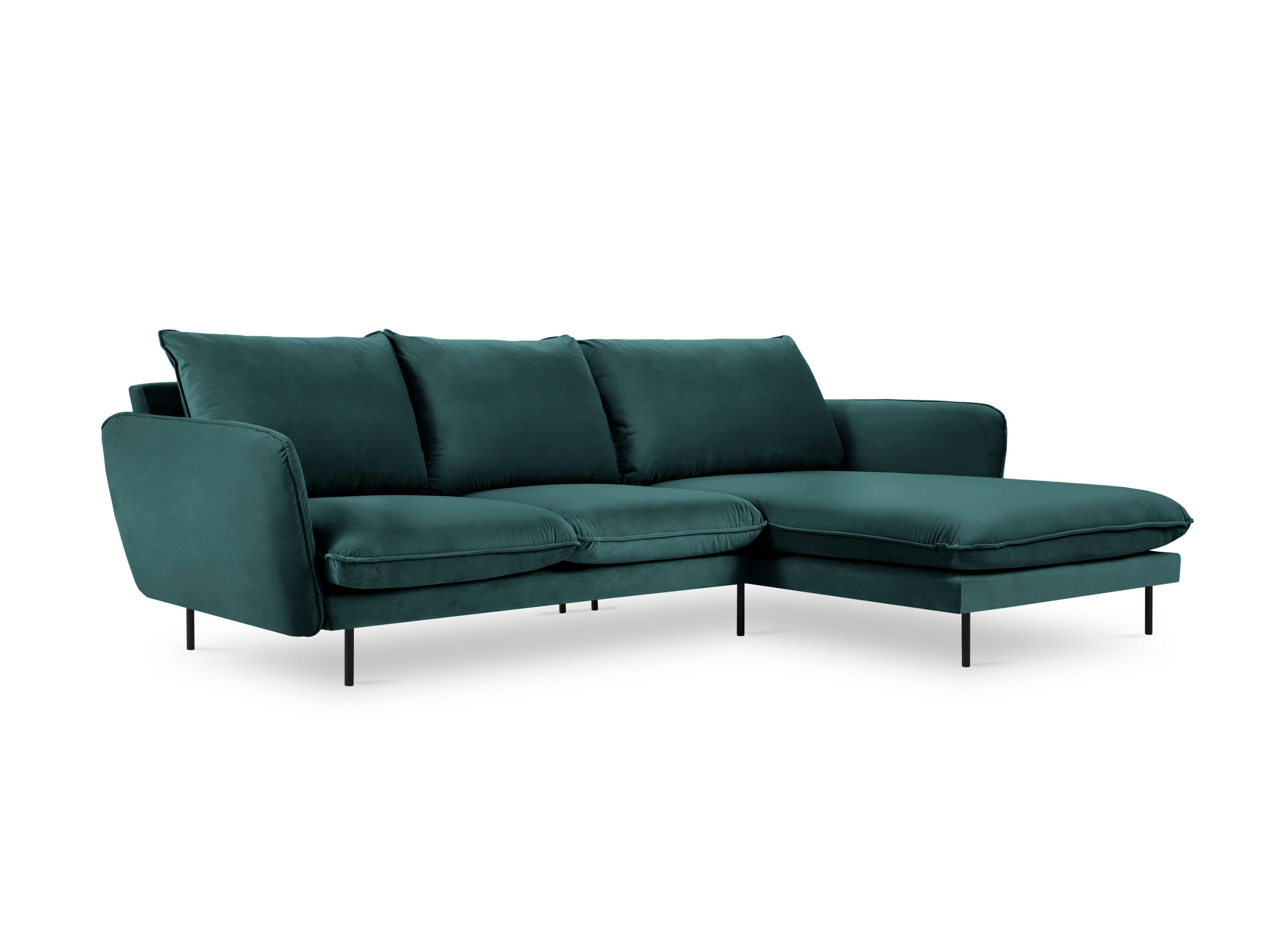 Narożnik aksamitny prawostronny VIENNA morski z czarną podstawą