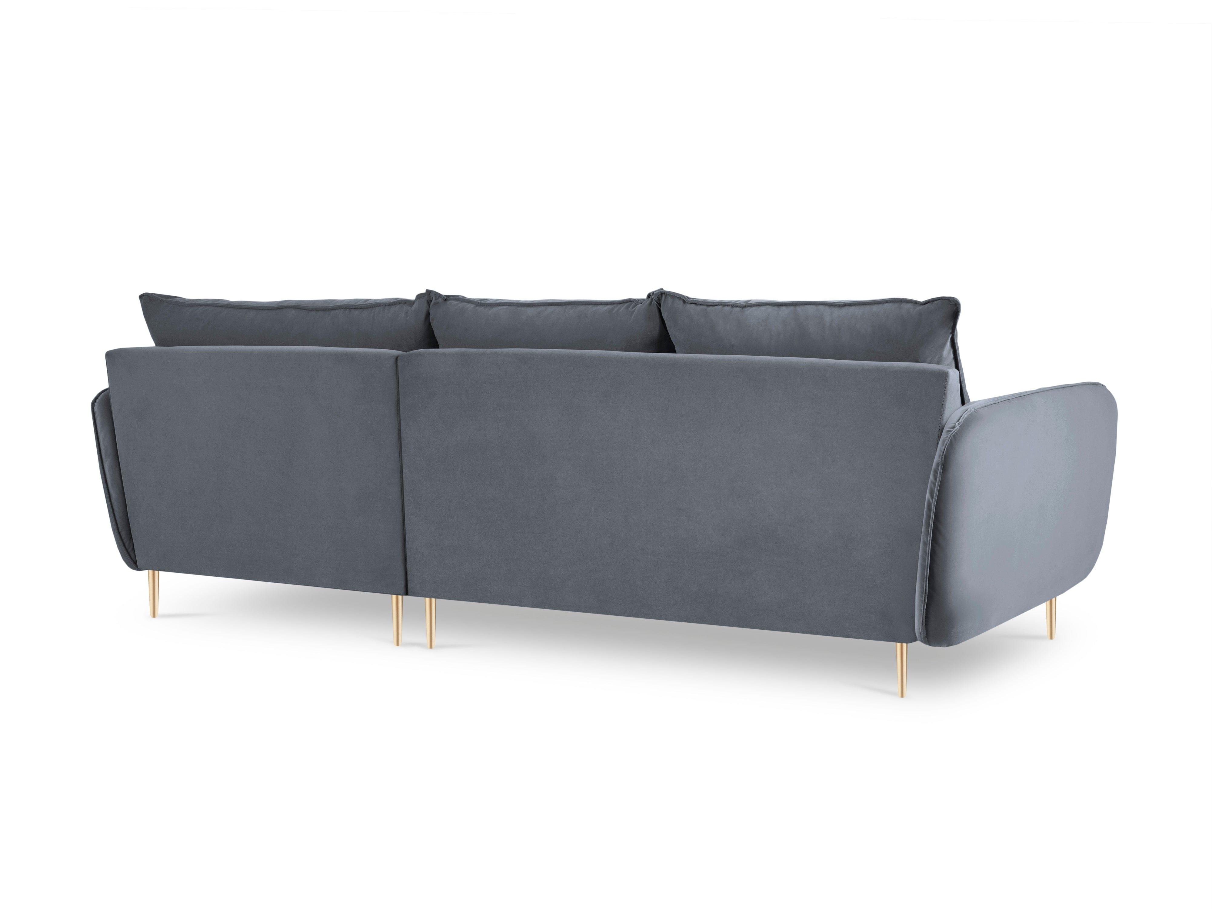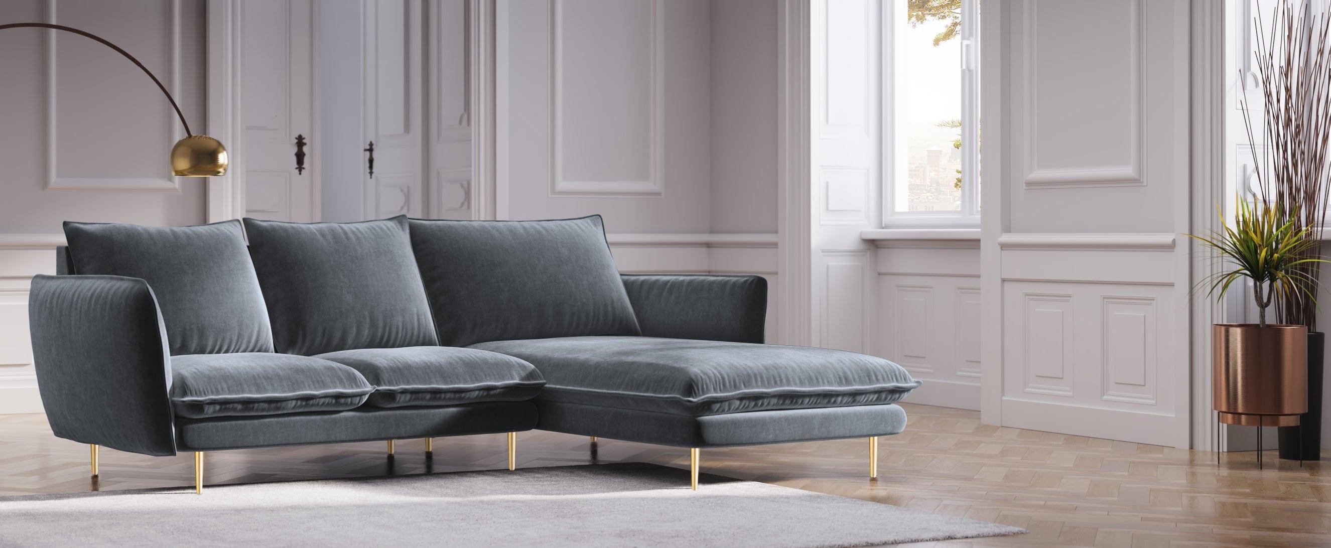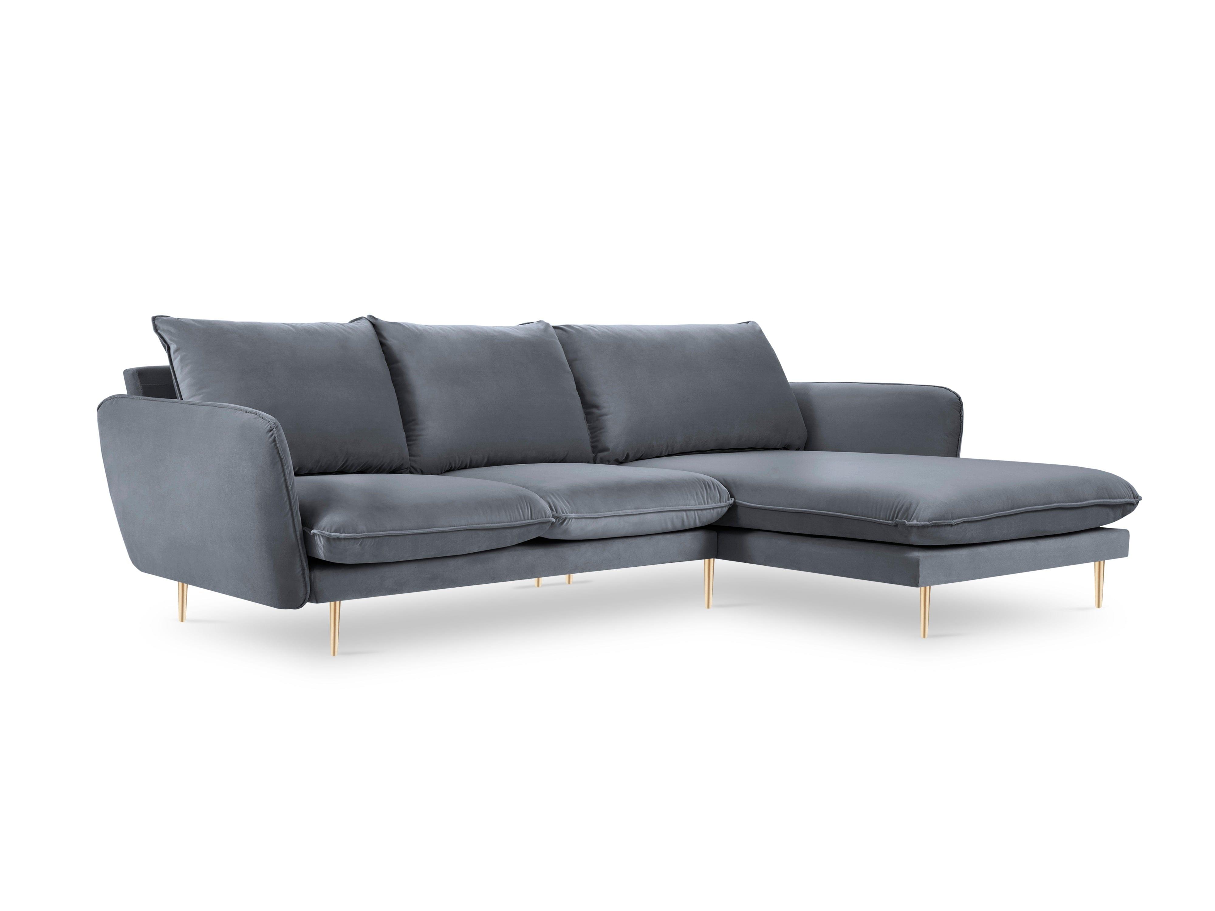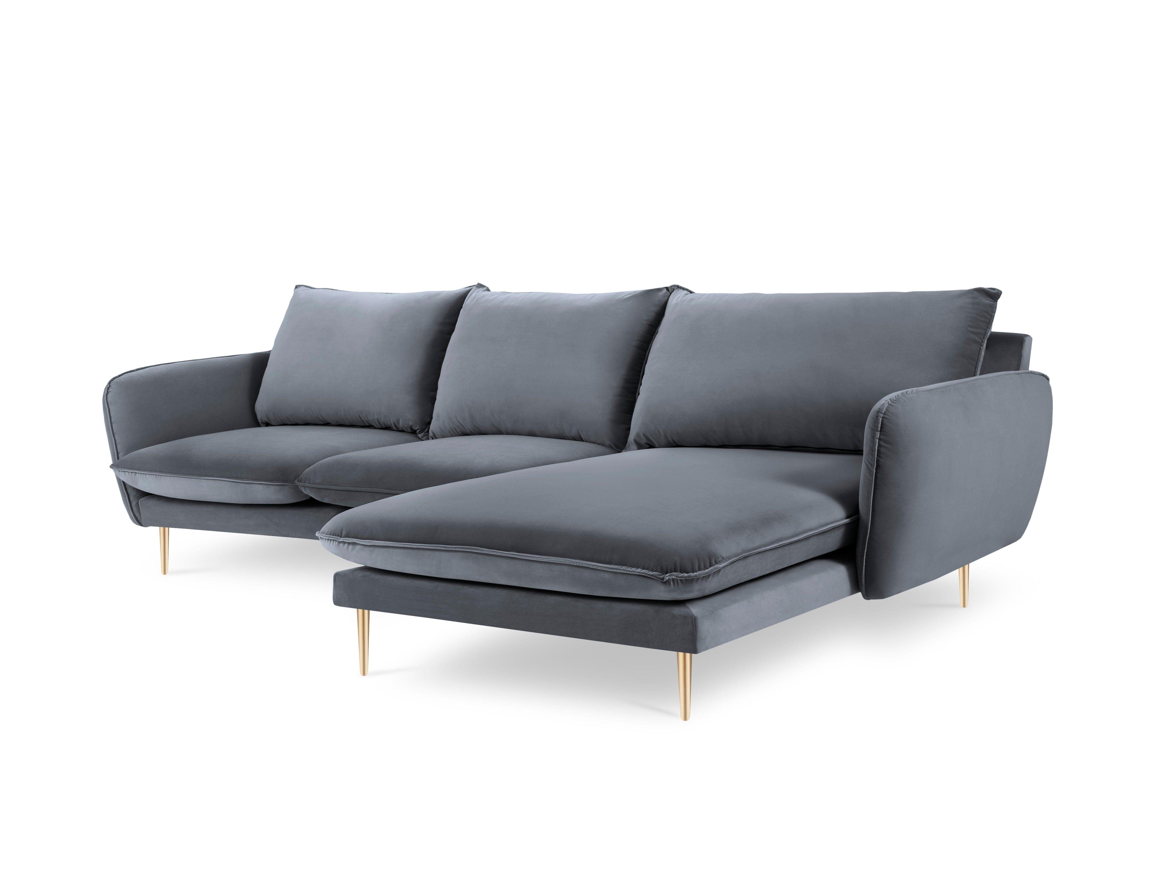 Narożnik aksamitny prawostronny VIENNA szary ze złotą podstawą