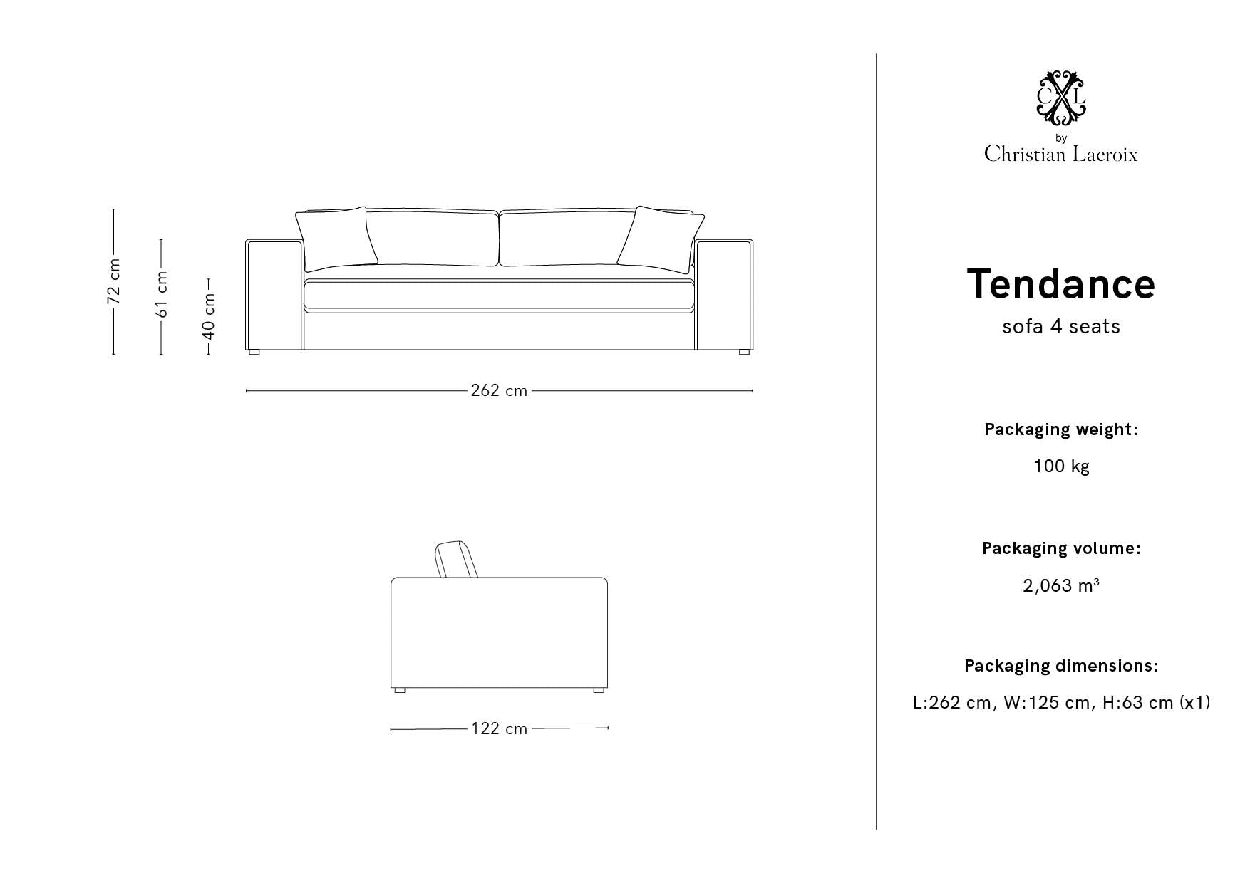 Sofa aksamitna dla czterech osób Tendance, sygnowana przez francuski dom mody Christian Lacroix, to piękne połączenie ponadczasowej elegancji z nowoczesnym wzornictwem. Geometryczne i subtelne kształty tej sofy wniosą do Twojego wnętrza odrobinę przytulności. Jej sześcienny design nadaje całości niepowtarzalnego charakteru.