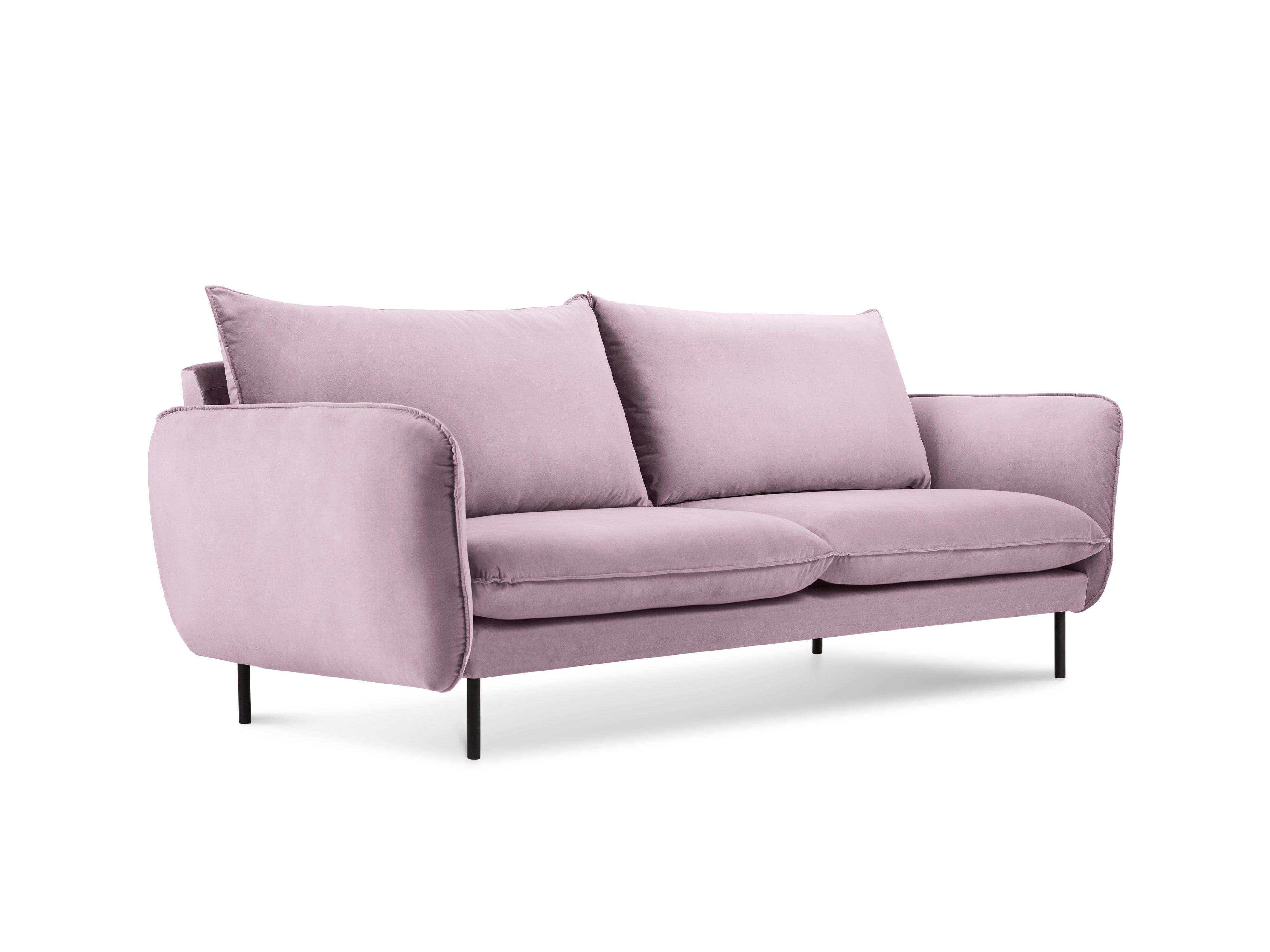 Sofa aksamitna 2-osobowa VIENNA pudrowy róż z czarną podstawą