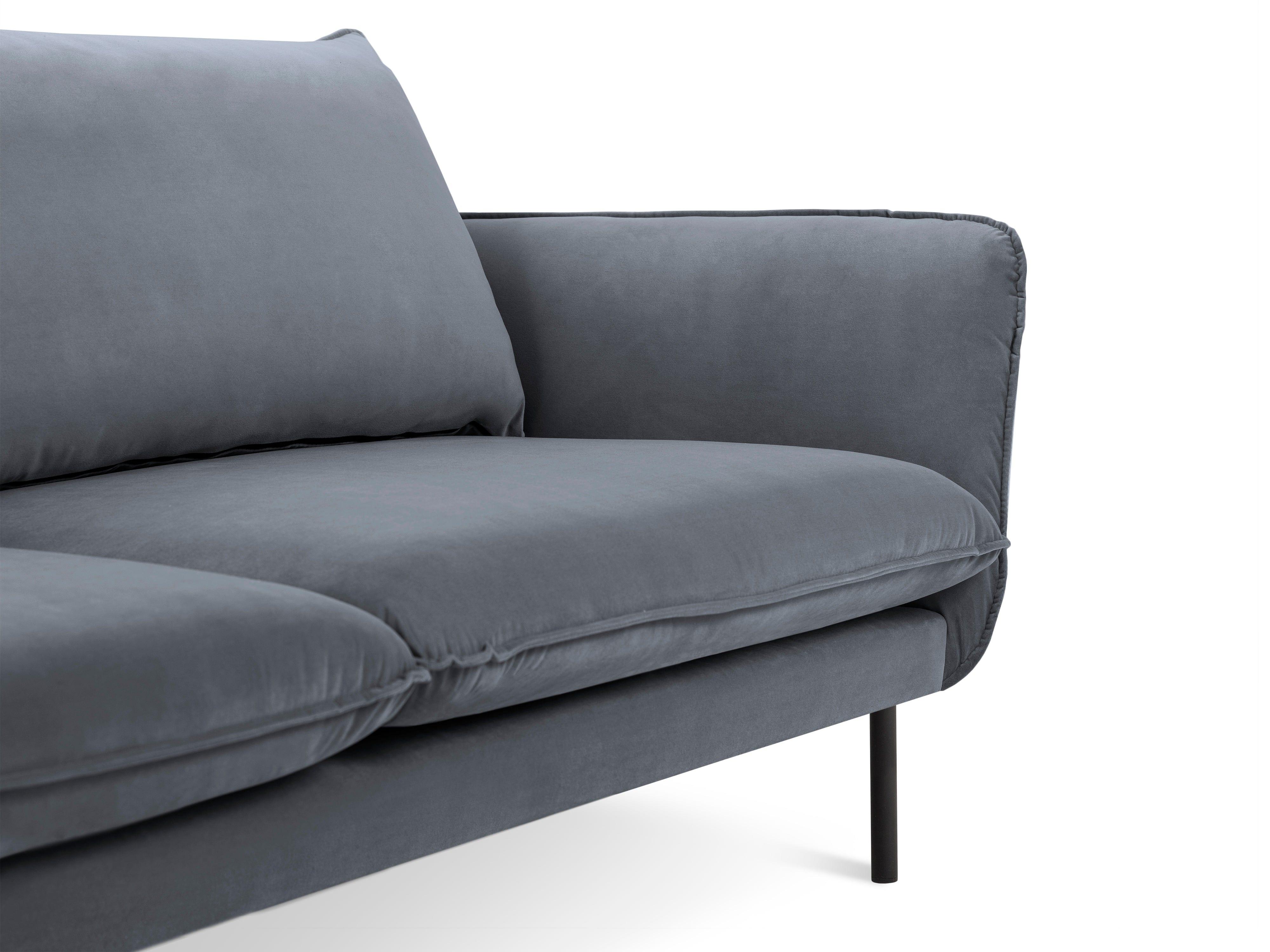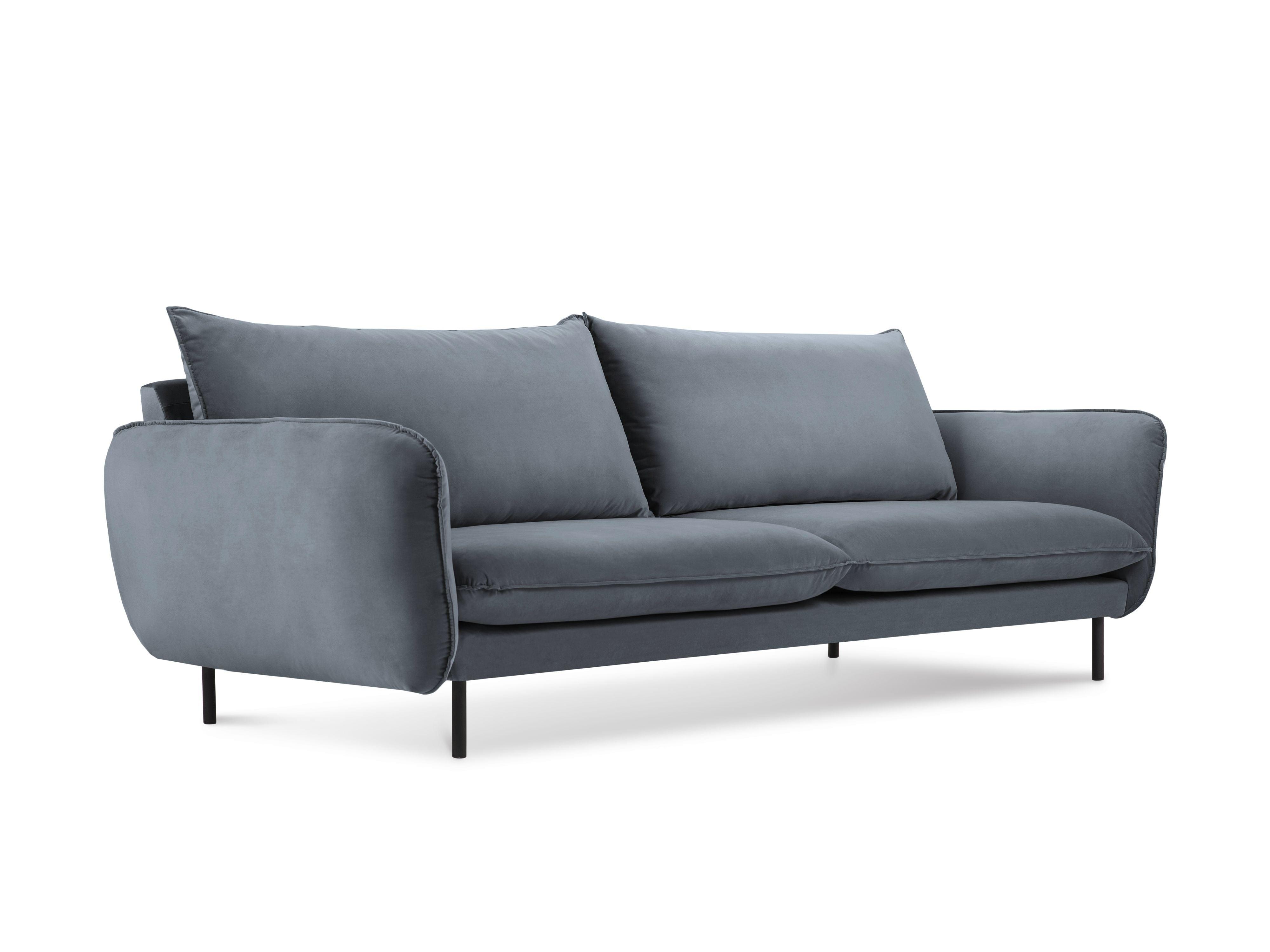 Sofa aksamitna 4-osobowa VIENNA szary z czarną podstawą