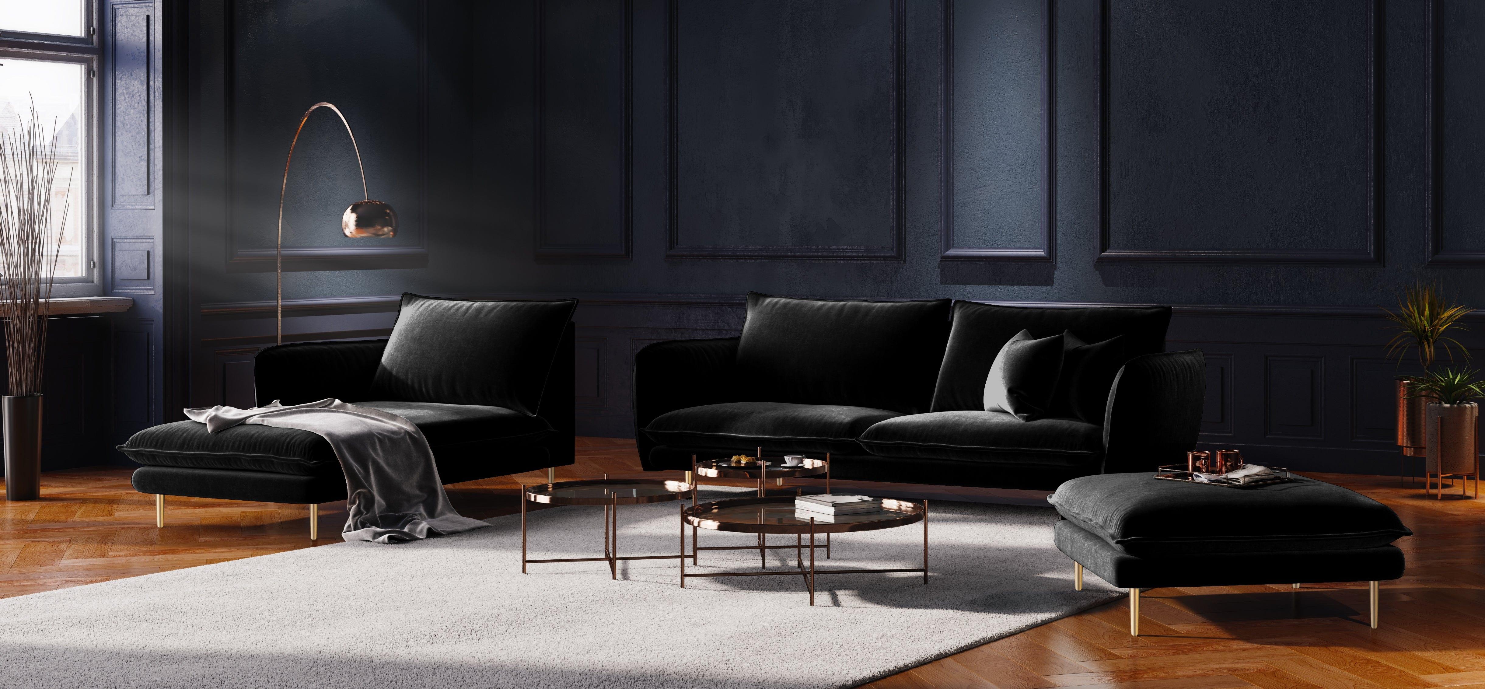Sofa aksamitna 4-osobowa VIENNA czarny ze złotą podstawą