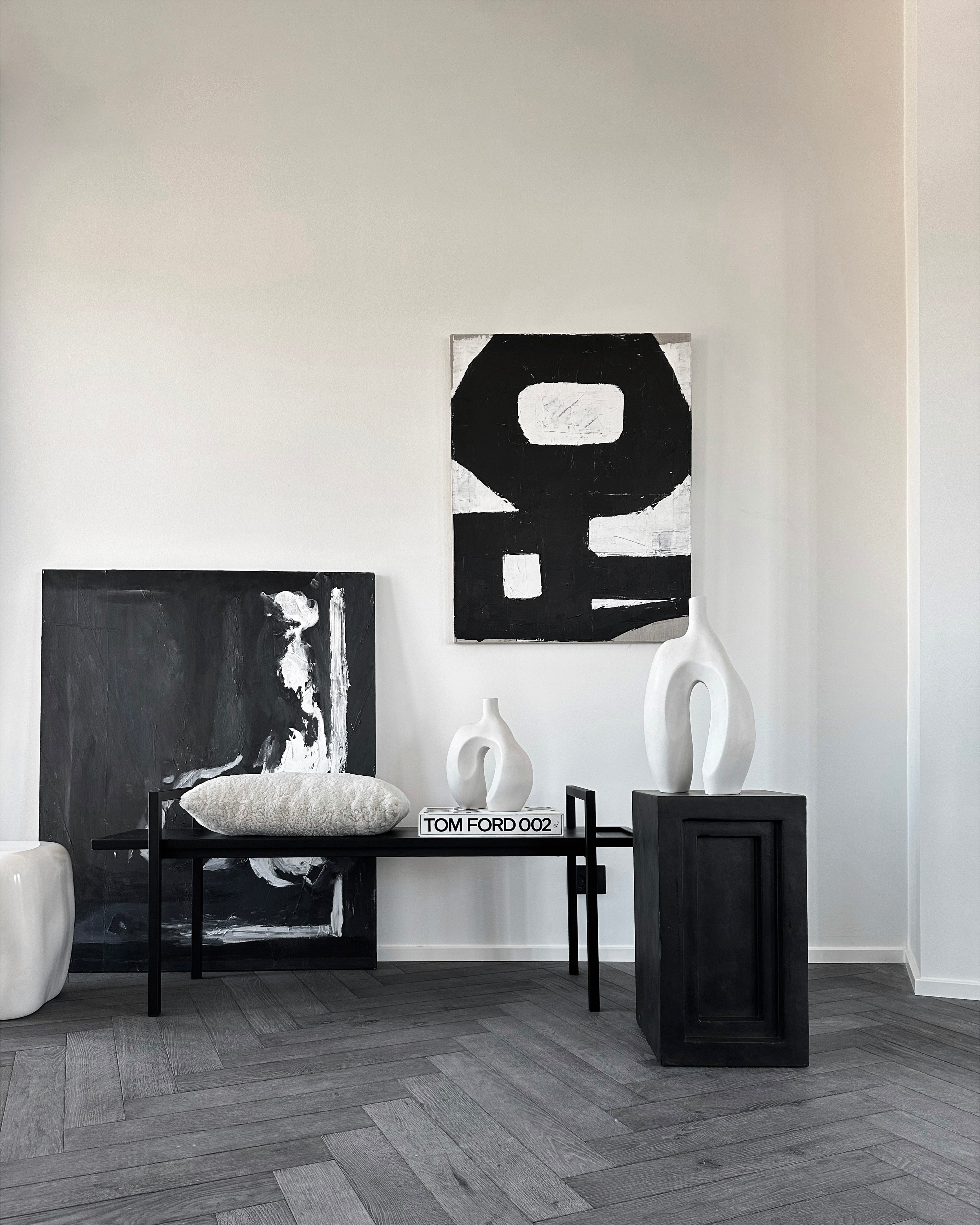 Dostępny w trzech zróżnicowanych kształtach i rozmiarach, wazon Ni może pełnić zarówno funkcję użytkową, jak i dekoracyjną. Wąski otwór pozwala na ekspozycję pojedynczej gałązki lub kilku subtelnych kwiatów, ale nawet bez wypełnienia wazon pozostaje wyrazistym obiektem – idealnym do minimalistycznych aranżacji. Zestawiony w grupie tworzy efektowną, rzeźbiarską kompozycję, dodając przestrzeni spokojnej energii i artystycznego wyrazu.