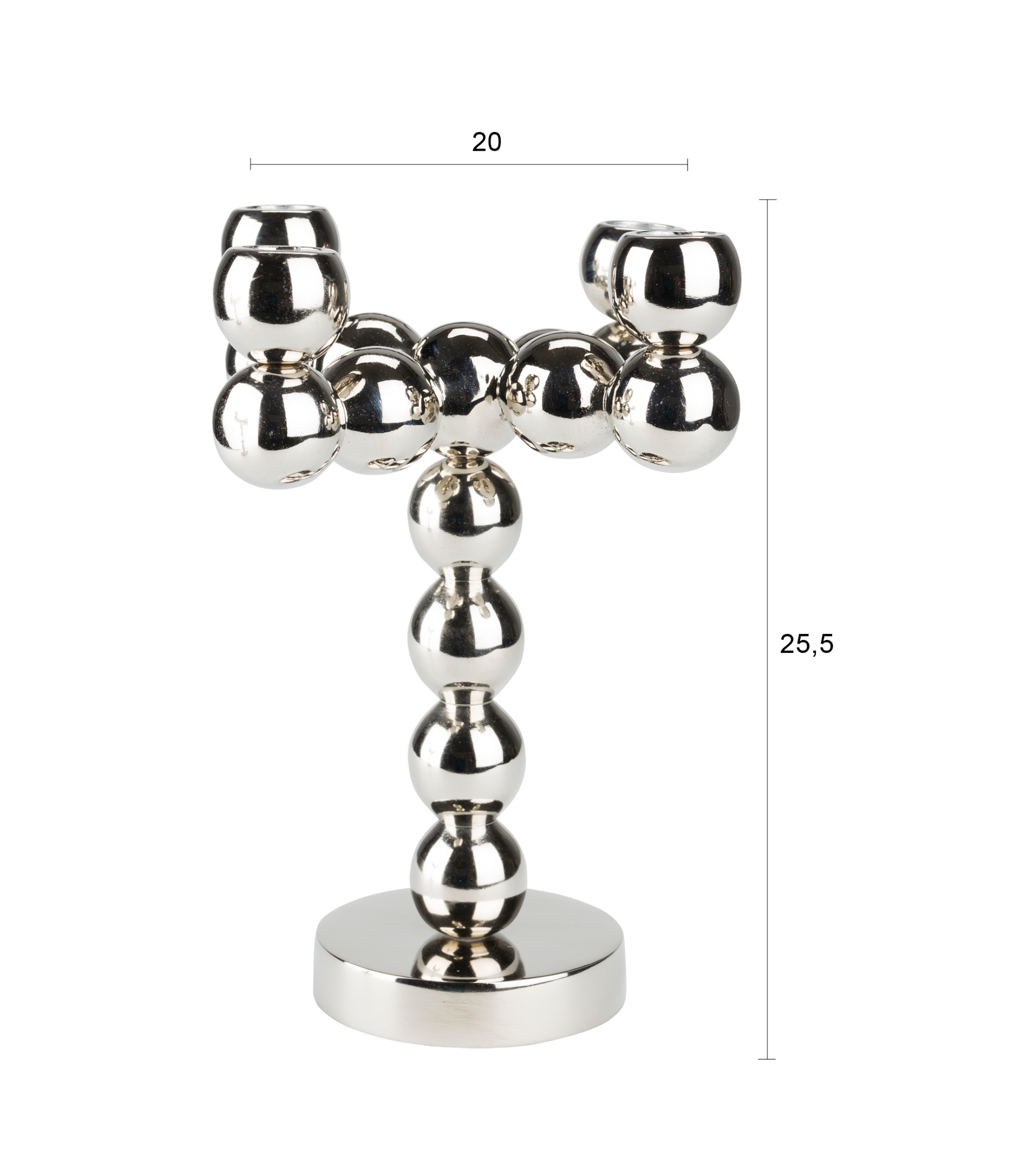 Świecznik Bubbles Four to wyjątkowy akcent dekoracyjny, który łączy w sobie nowoczesność i oryginalność. Jego forma została zaprojektowana z kulistych elementów przypominających bąbelki, które układają się w interesującą, organiczną strukturę. Wykonany z aluminium w srebrnym wykończeniu, wprowadza do wnętrza subtelny blask i elegancję, nie dominując przy tym przestrzeni.
