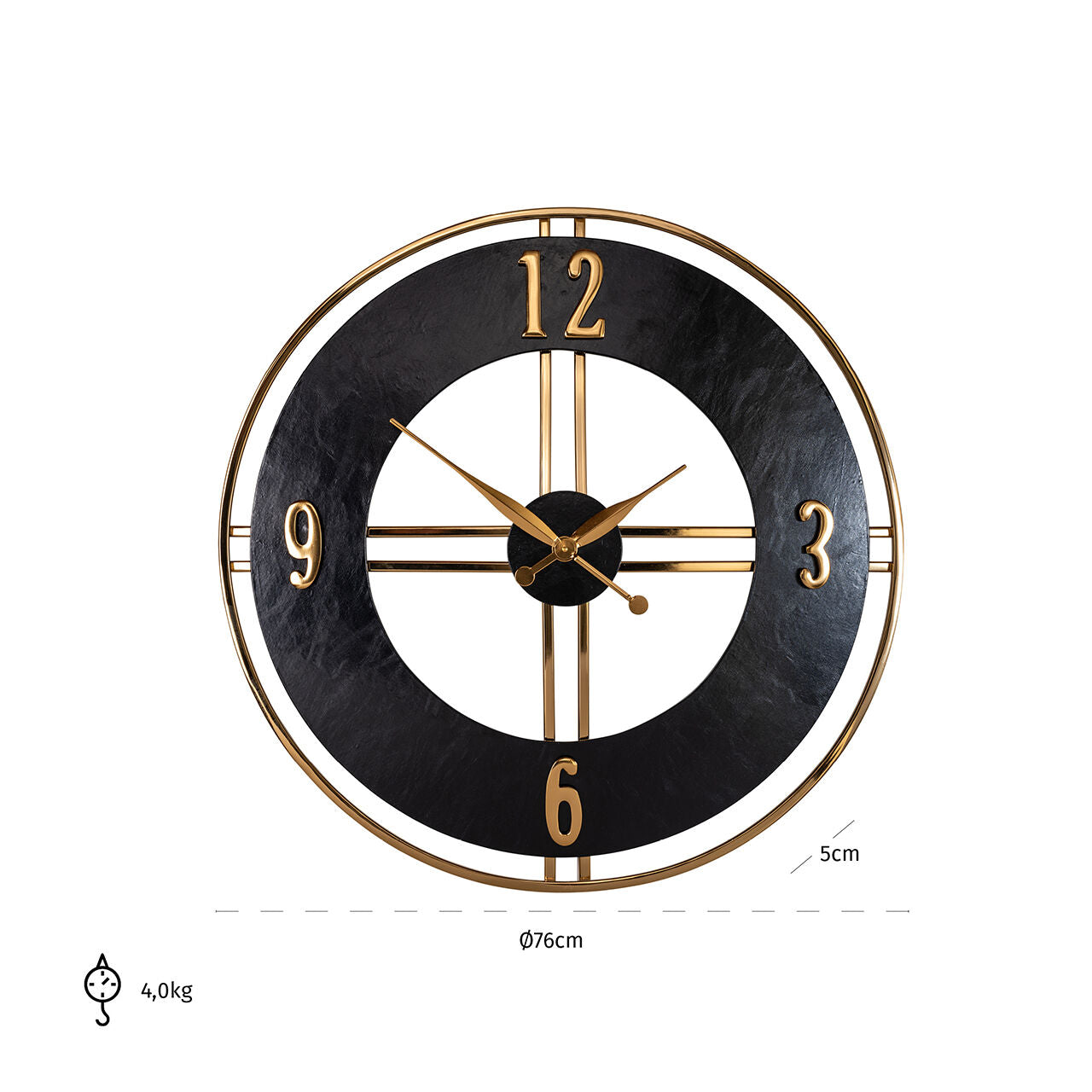Zegar ścienny LILY czarny ze złotym