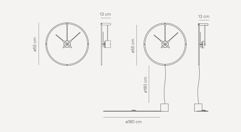 Wersja Premium wyróżnia się połączeniem naturalnego orzecha i mosiądzu, co nadaje projektowi szlachetnego, wyrafinowanego charakteru. Minimalistyczna obręcz w zestawieniu z ciepłymi materiałami buduje elegancki kontrast, a zintegrowany system LED zapewnia równomierną poświatę wokół zegara. Model dostępny jest do wyboru jako zegar ścienny (instalacja ścienna) lub zegar podłogowy (wersja plug-in), dzięki czemu można dopasować go do charakteru przestrzeni – od salonu, przez gabinet, po eleganckie lobby.