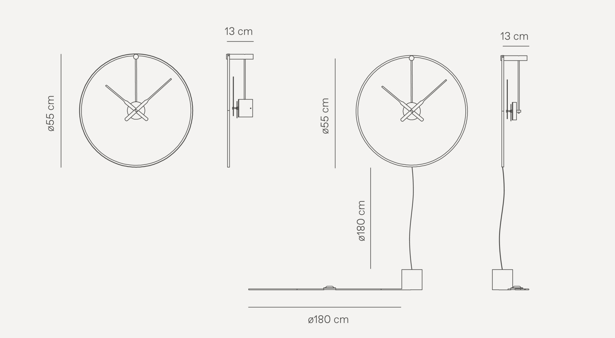 Czarna, anodowana obręcz z aluminium w połączeniu ze zintegrowanym systemem LED podkreśla relację między światłem a czasem. Model ten doskonale sprawdzi się jako designerski zegar ścienny LED, sypialni lub strefy wypoczynkowej, gdzie oprócz funkcjonalności liczy się klimat i estetyka. Ombra Mini dostępna jest w wersji do instalacji ściennej lub podłogowej, co pozwala dopasować ją do charakteru przestrzeni.