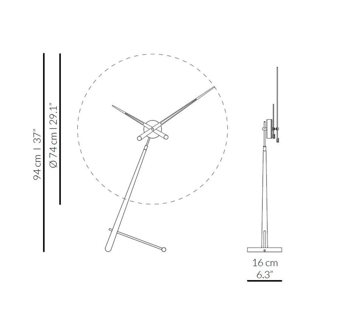 Zegar stołowy Puntero to model o wyjątkowo wyrazistej, dynamicznej sylwetce, który natychmiast przyciąga uwagę. Ten zegar opiera się na metalowej podstawie i solidnym, drewnianym korpusie, tworząc harmonijną kompozycję pełną lekkości i równowagi. Smukła forma oraz wydłużone wskazówki nadają mu rzeźbiarski charakter, dzięki czemu designerski zegar stołowy Puntero staje się mocnym akcentem w nowoczesnych i eleganckich wnętrzach.