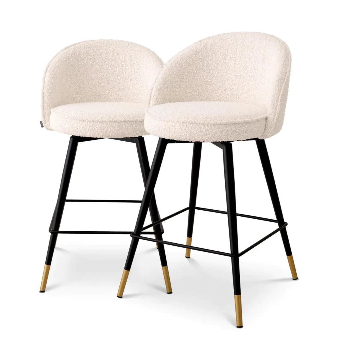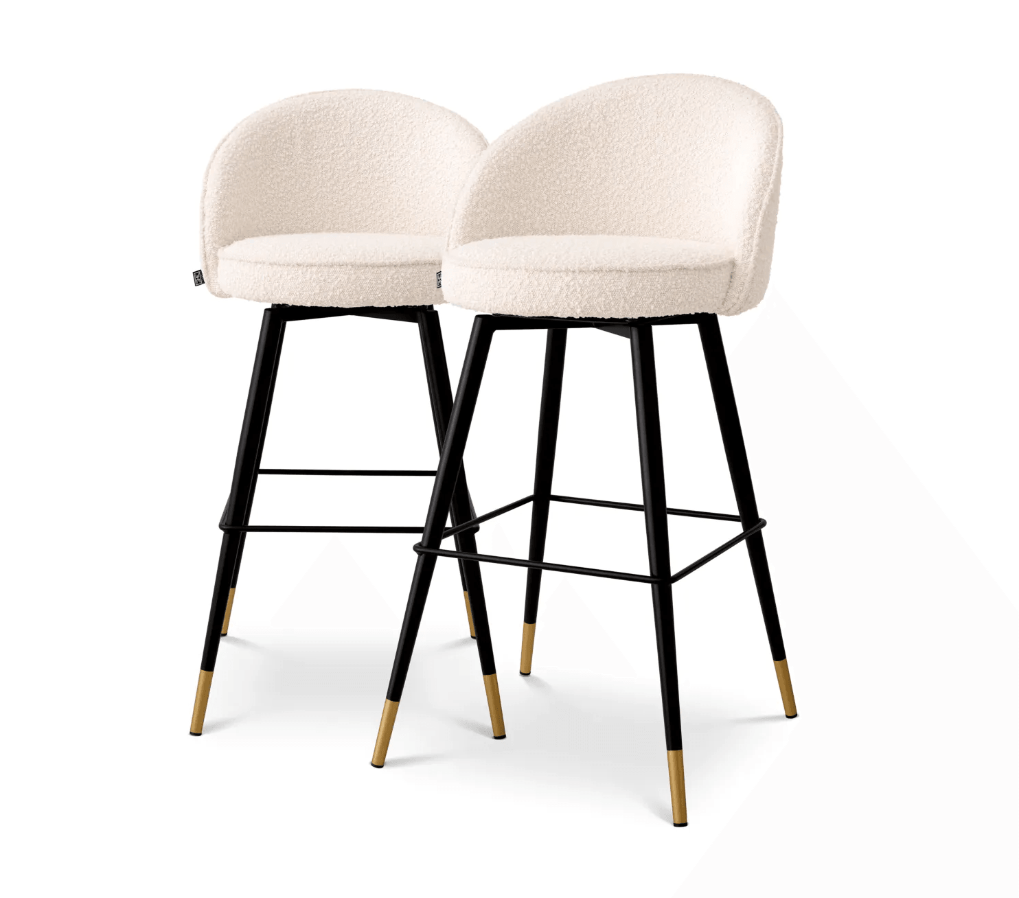 Zestaw hokerów Cooper to esencja elegancji i precyzji w jednym. Komponujący się w parze, ten wykwintny zestaw dodaje nutę luksusu do każdej przestrzeni. Kremowa tkanina boucle tworzy wyrafinowane połączenie kolorystyczne i teksturalne. Elegancja hokera jest dodatkowo podkreślona przez obrotową podstawę, która łączy w sobie ciemną głębię czerni z lśniącym blaskiem mosiądzu.
