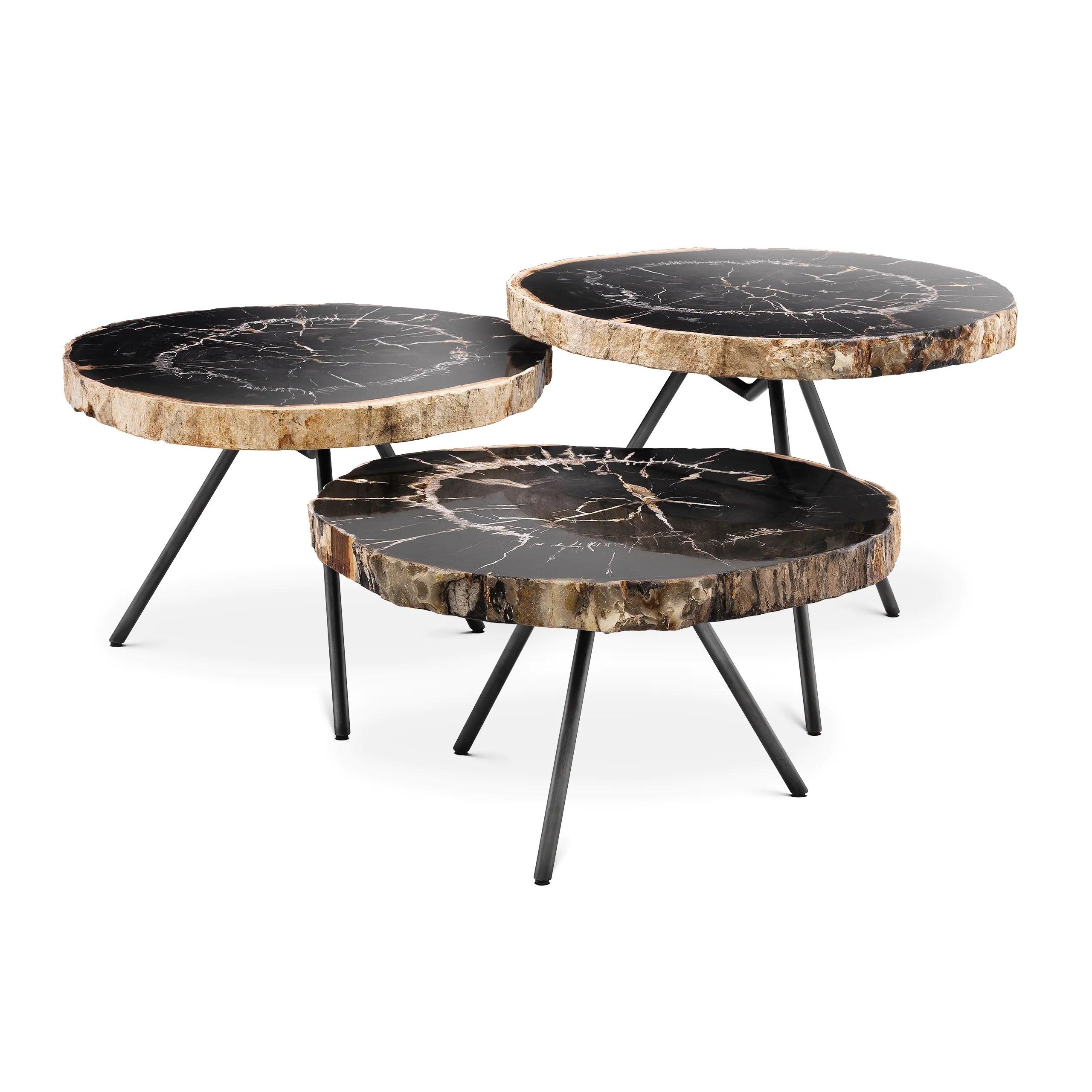 Zapraszamy w podróż w czasie, gdzie natura zostaje przechwycona i utrwalona w kamieniu, stając się świadkiem wieków mijających. Zestaw stolików kawowych De Soto to prawdziwe arcydzieła, które łączą w sobie niezwykłą historię z nowoczesnym wzornictwem.