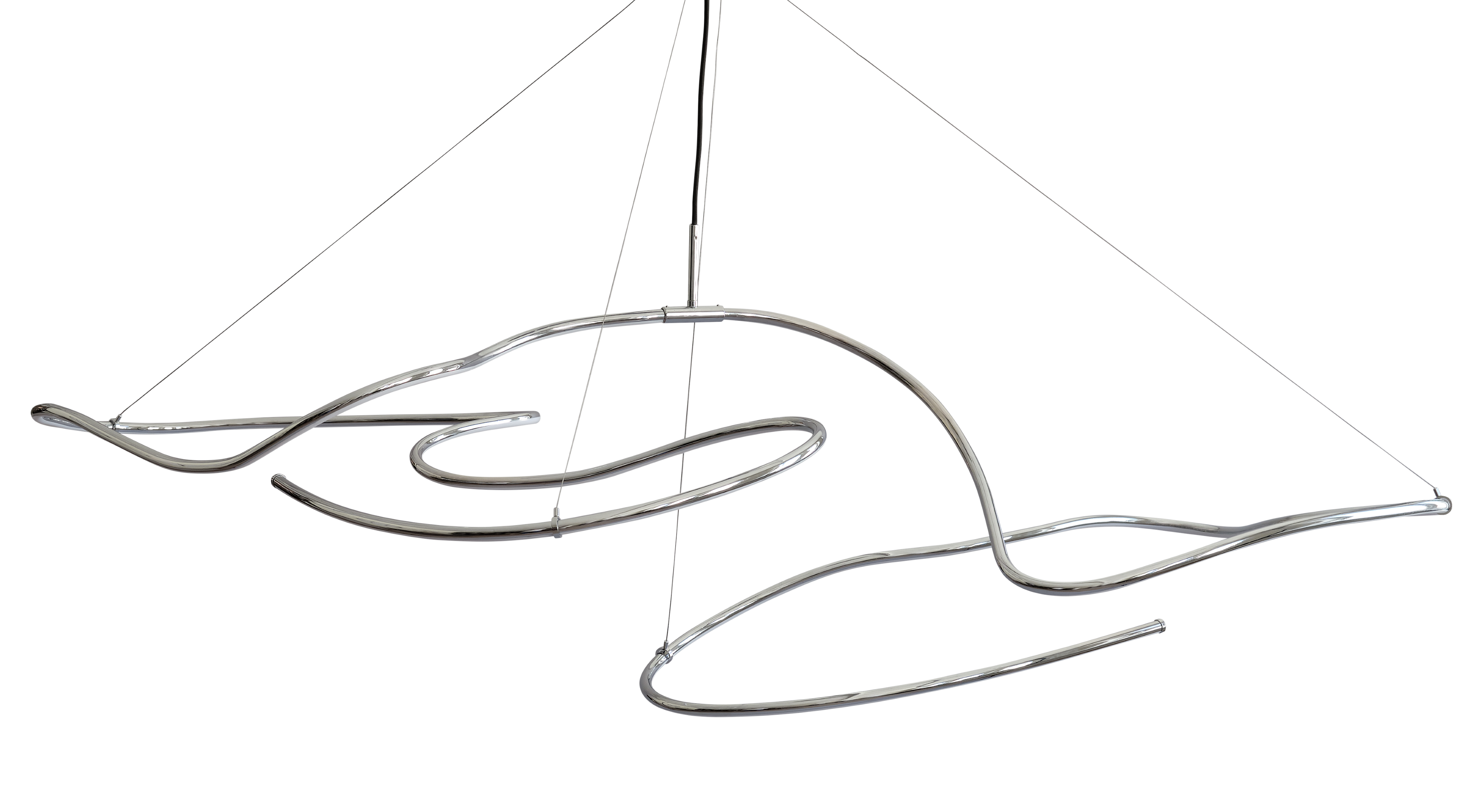 Czerpiąc inspirację ze sztuki minimalistycznej, żyrandol Ghost płynnie łączy światło z rzeźbą, ucieleśniając graficzną estetykę oświetlenia. Cechą charakterystyczną Ghosta jest błyszcząca, chromowana akrylowa tuba, która płynie w różnych kierunkach, tworząc oświetlenie otoczenia przypominające organiczne wzory. Projekt, wywodzący się z ręcznego szkicu, nadaje przestrzeniom artystyczną i graficzną atmosferę. Jego stale ewoluujący wygląd urzeka obserwatorów, przekształcając się w różnorodne wzory i formy w zależności od punktu widzenia. W każdym otoczeniu lampa Ghost stanowi centralny element.
